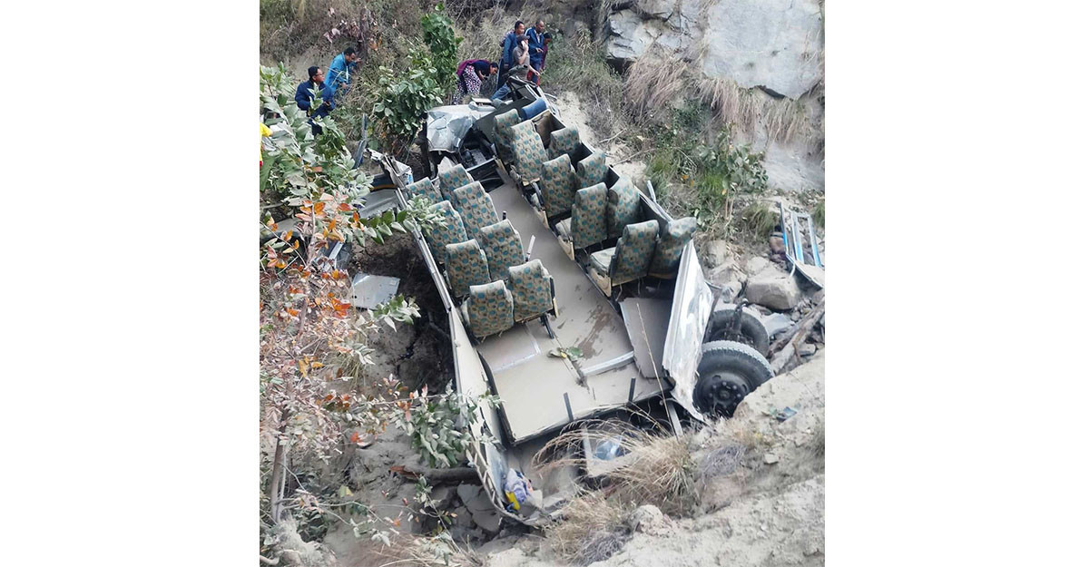 The bus (Na 4 Kha 735) with around 25 persons fell down around 300 meters off the road at around 7:30 in the morning, according to Deputy Superintendant of Police (DSP) Lal Dhwoj Subedi who reached the spot.