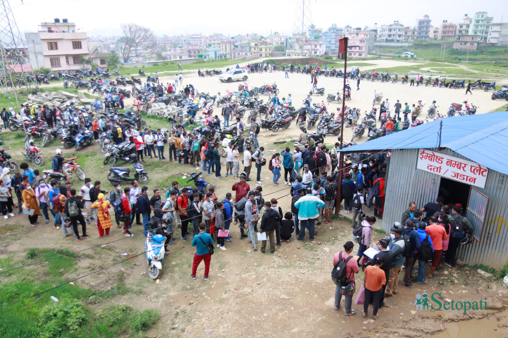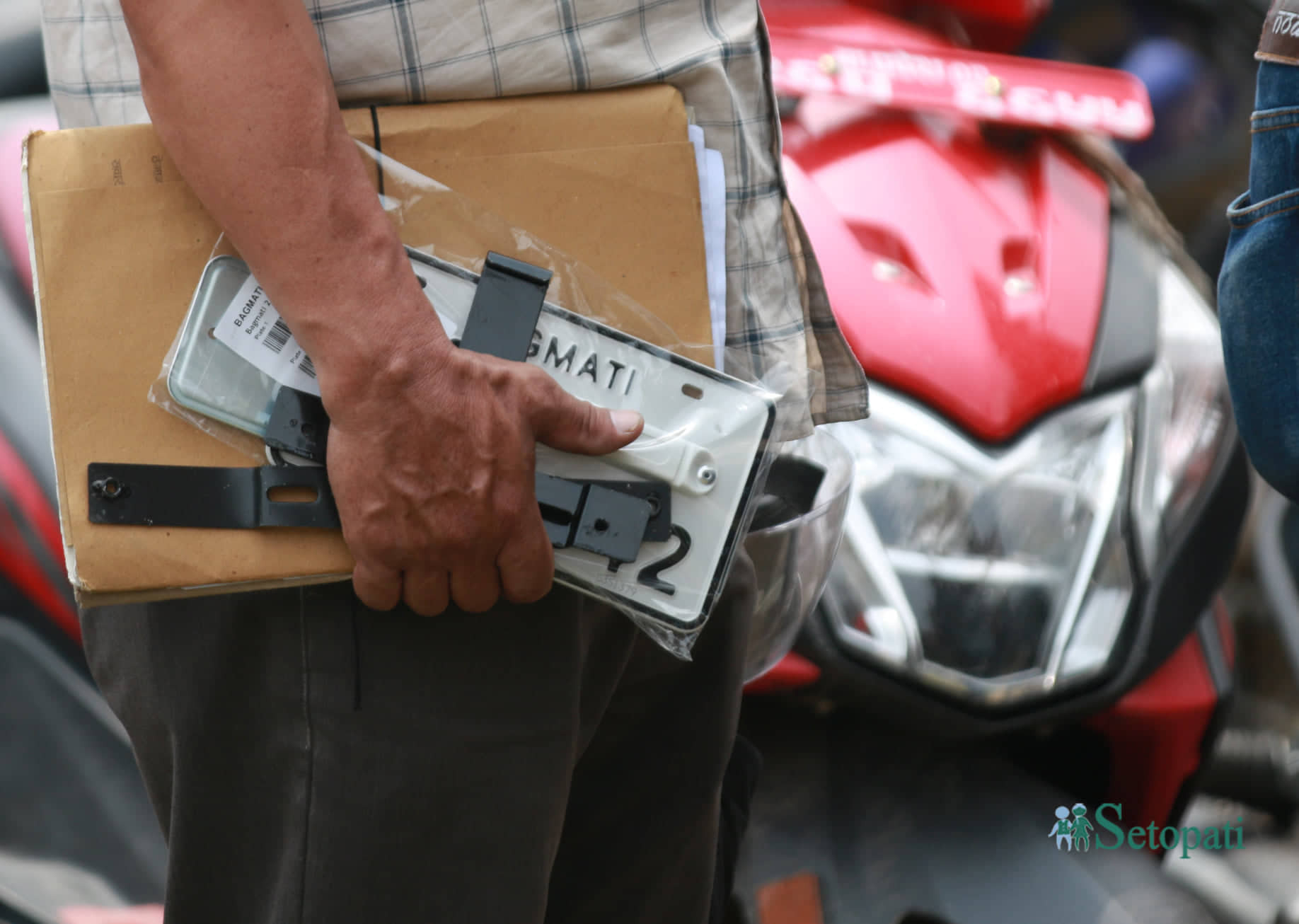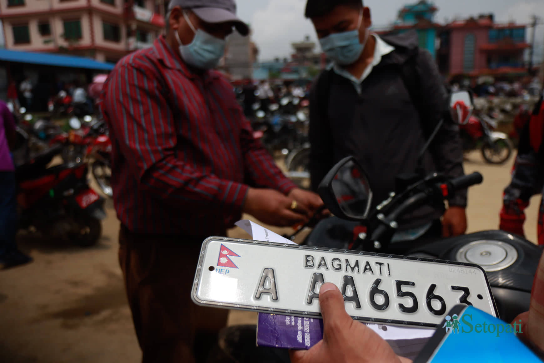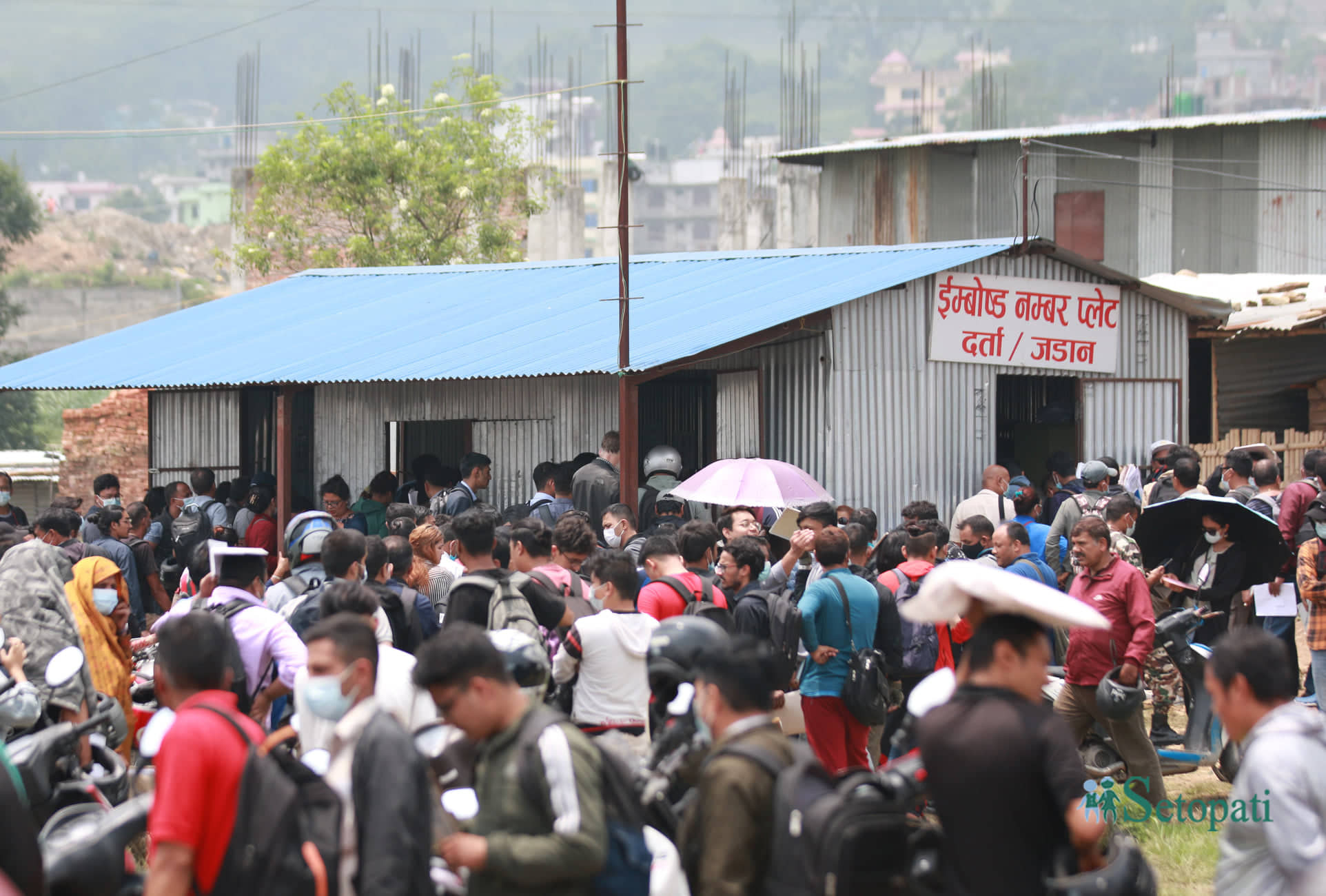 People have been thronging the Transport Management Office at Gurjudhara, Kathmandu since Tuesday morning to apply for embossed number plates after the Department of Transport Management (DoTM) warned of strict action if they do not install embossed number plates on their vehicles by mid-July.
