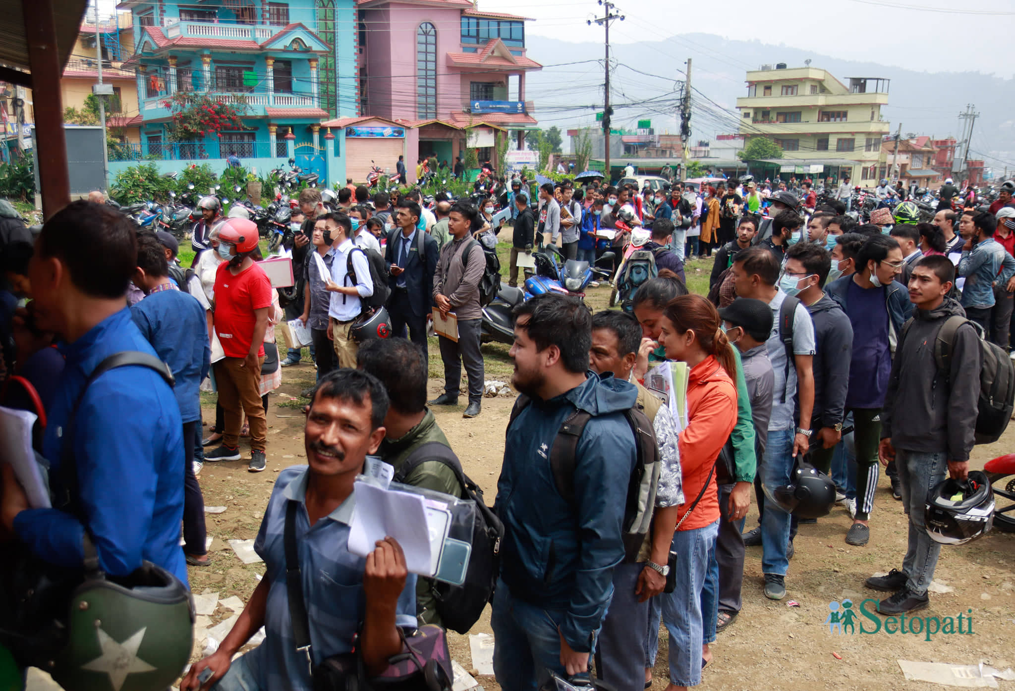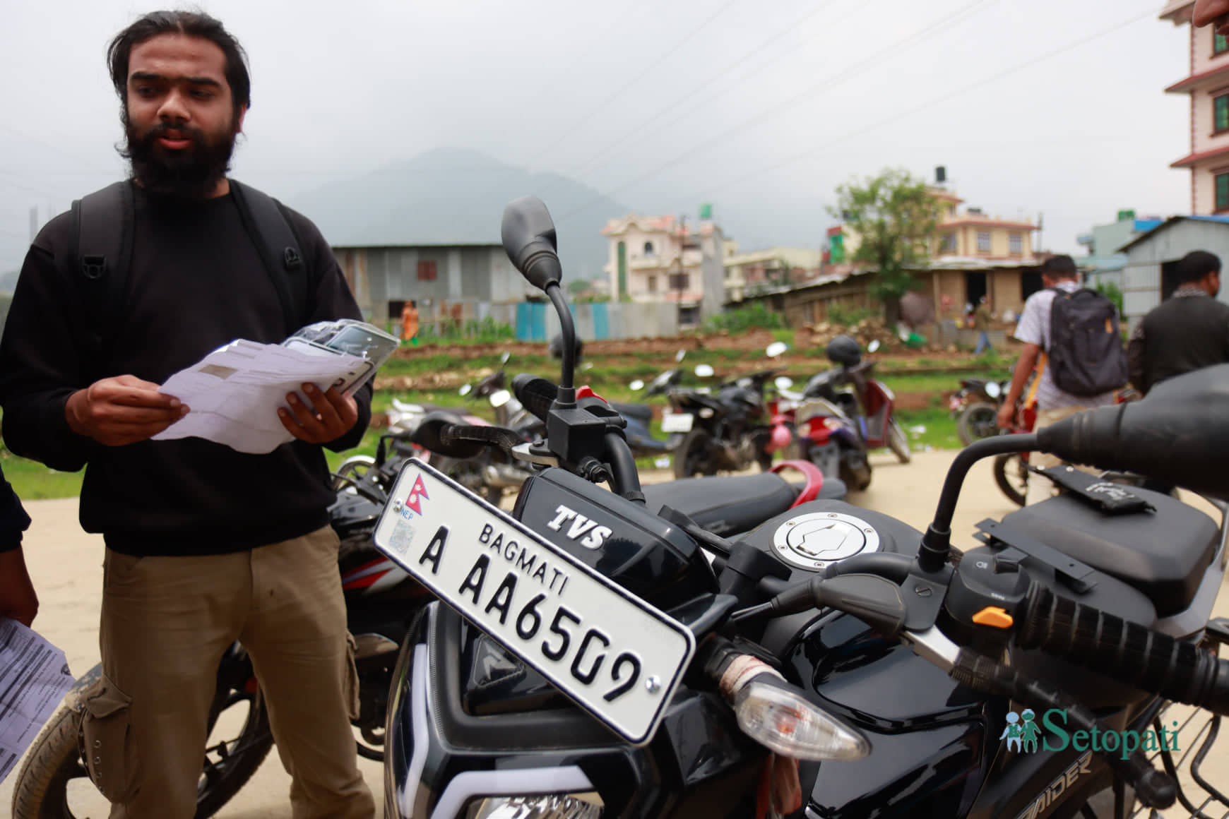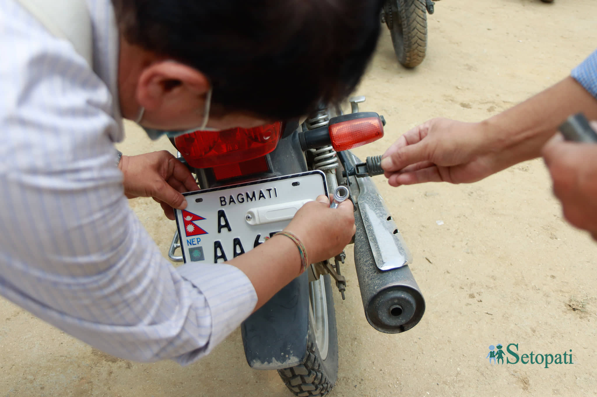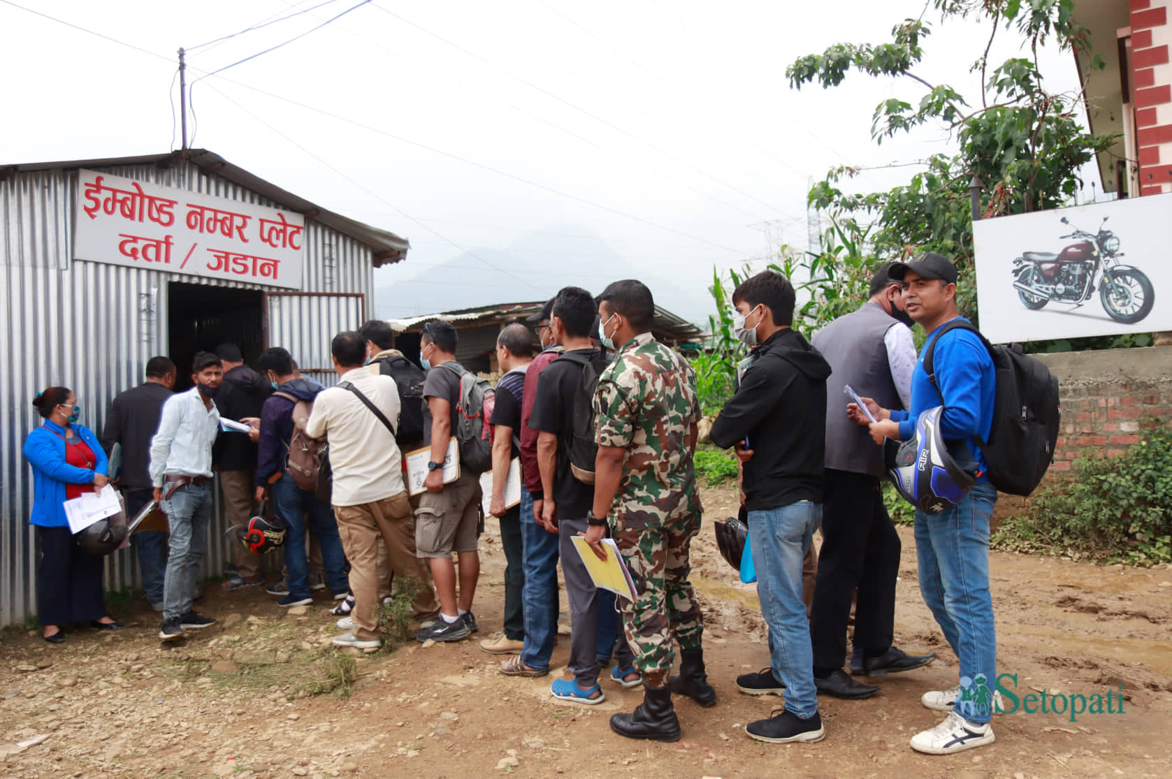 People have been thronging the Transport Management Office at Gurjudhara, Kathmandu since Tuesday morning to apply for embossed number plates after the Department of Transport Management (DoTM) warned of strict action if they do not install embossed number plates on their vehicles by mid-July.