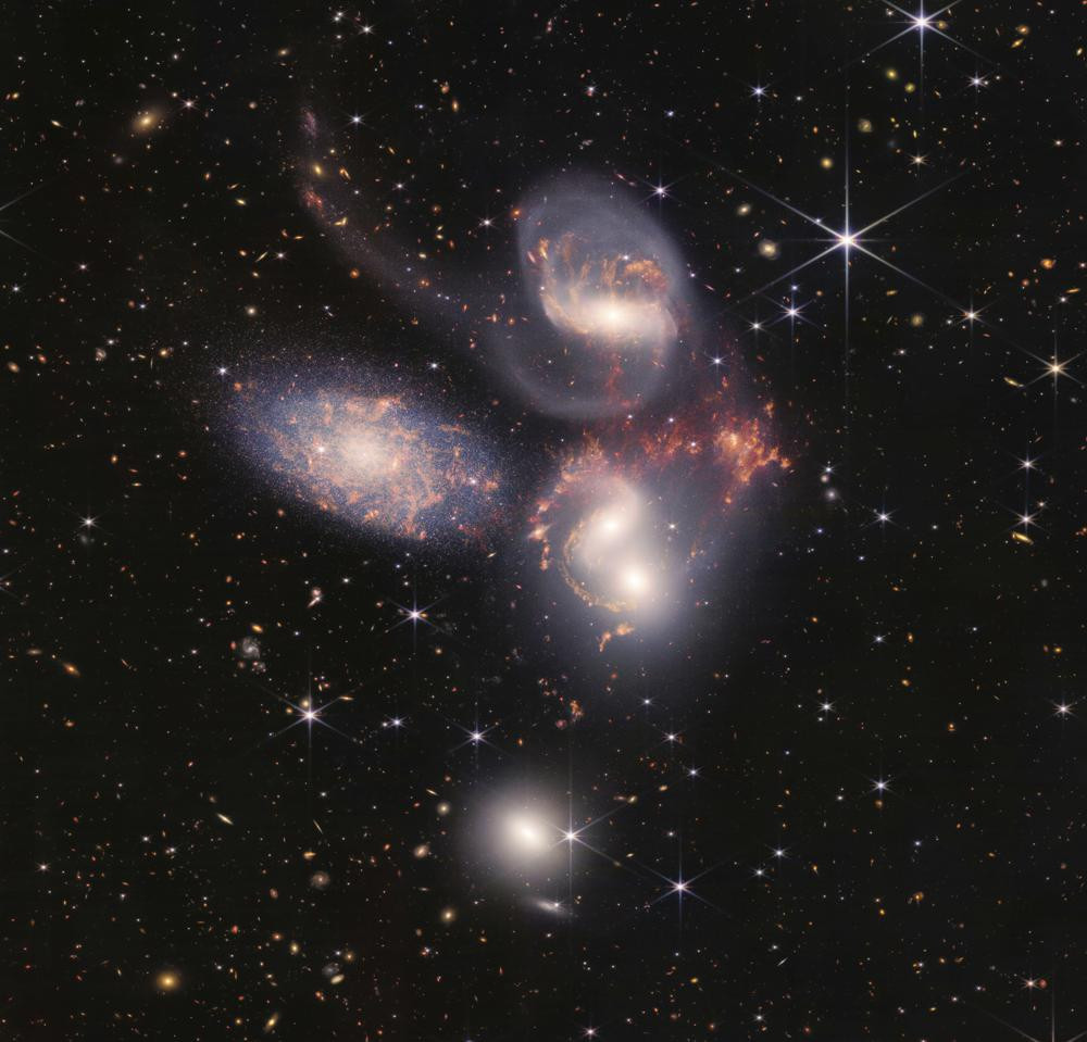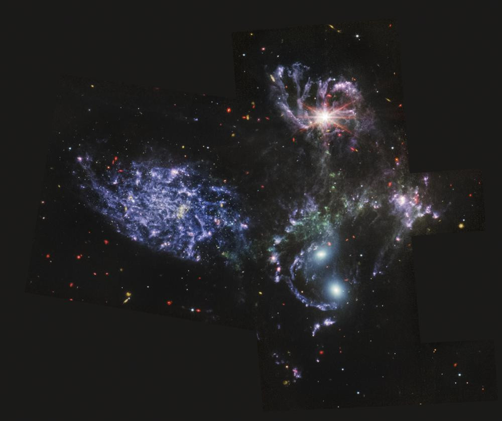 — Stephan’s Quintet, five galaxies in a cosmic dance that was first seen 225 years ago in the constellation Pegasus. It includes a black hole that scientists said showed material “swallowed by this sort of cosmic monster.” Webb “has just given us a new, unprecedented 290 million-year-old view of what this Quintet is up to,” Cornell University astronomer Lisa Kaltenegger, who wasn’t part of the Webb team, said in an email.