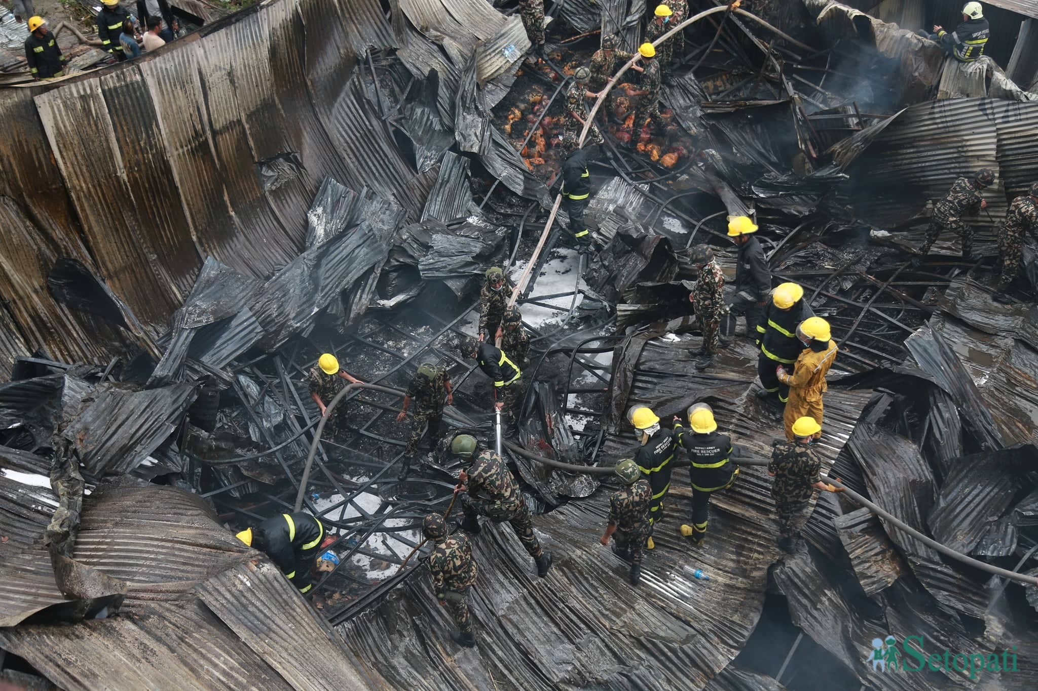 Fire engines from Kathmandu, Lalitpur, Bhaktapur and Tribhuvan International Airport and more than 20 water tankers were used to contain the blaze.
