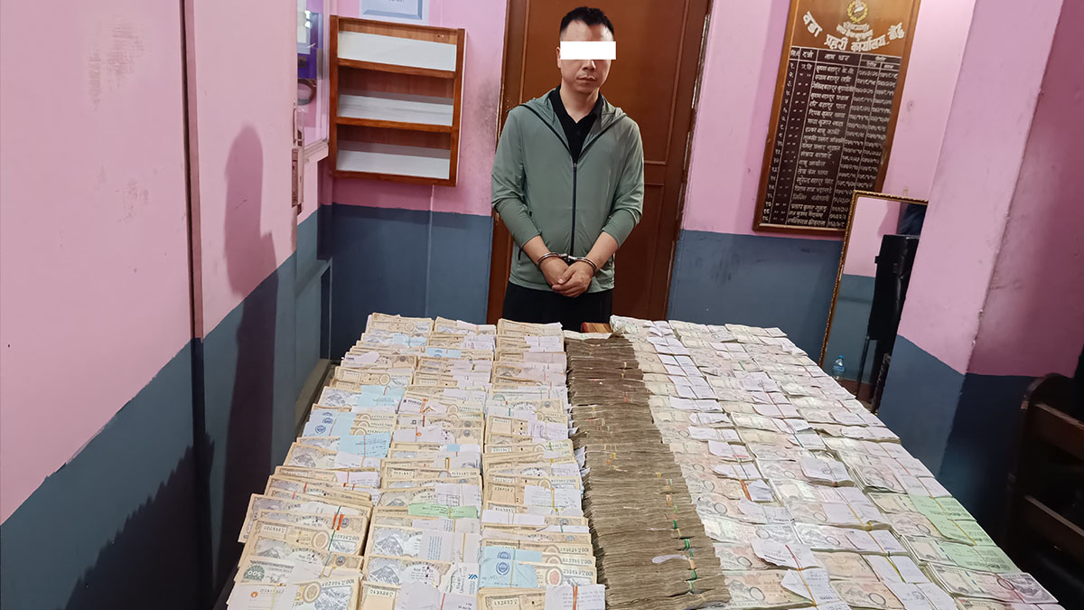 Police apprehended the Chinese national on Monday along with unaccounted-for cash worth Rs 14.4 million from a house at Naya Basti, Bauddha, Kathmandu Metropolitan City-6.
