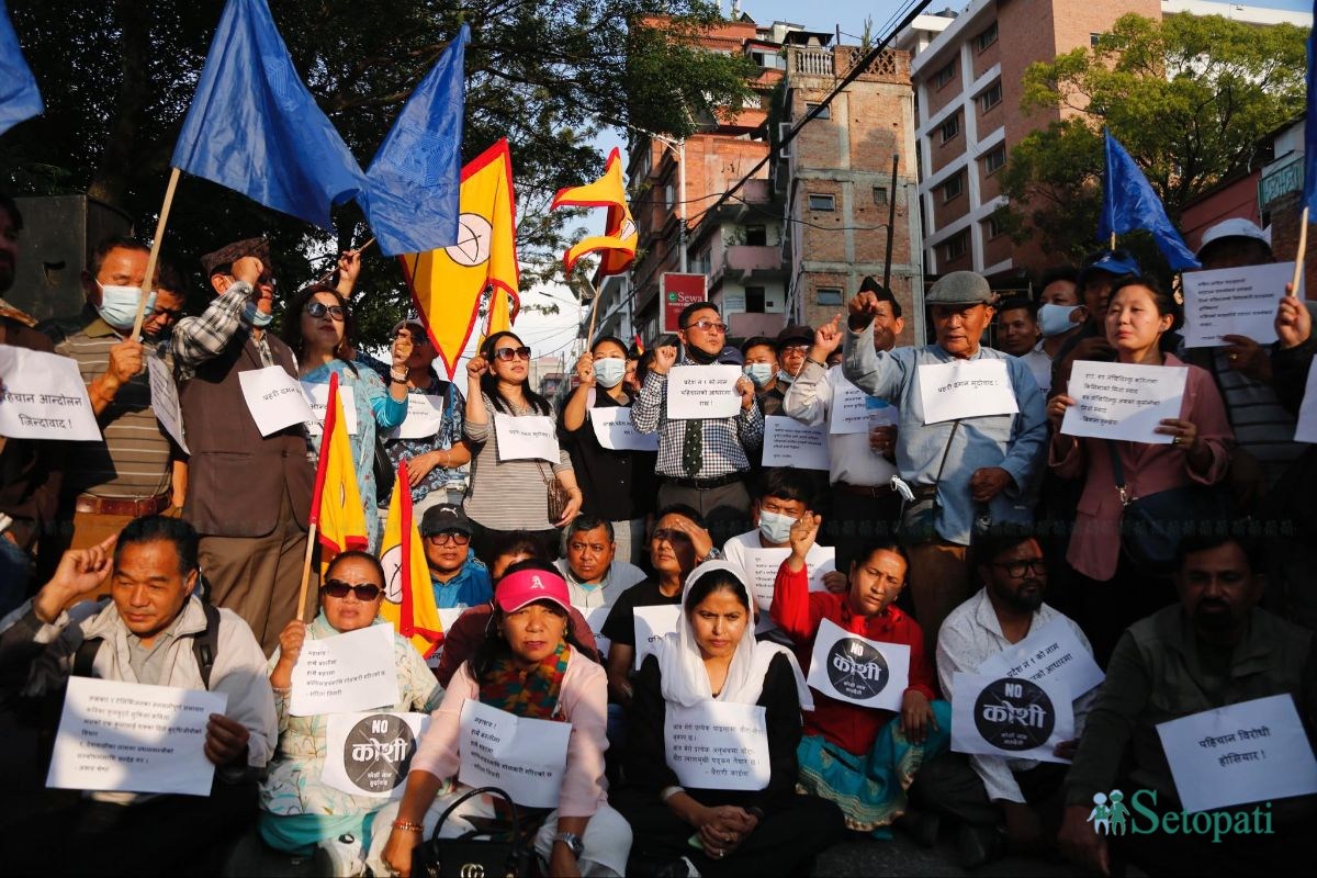 कोशी प्रदेशको नामकरणविरूद्ध काठमाडौंको माइतीघरमा प्रदर्शन भएको छ।