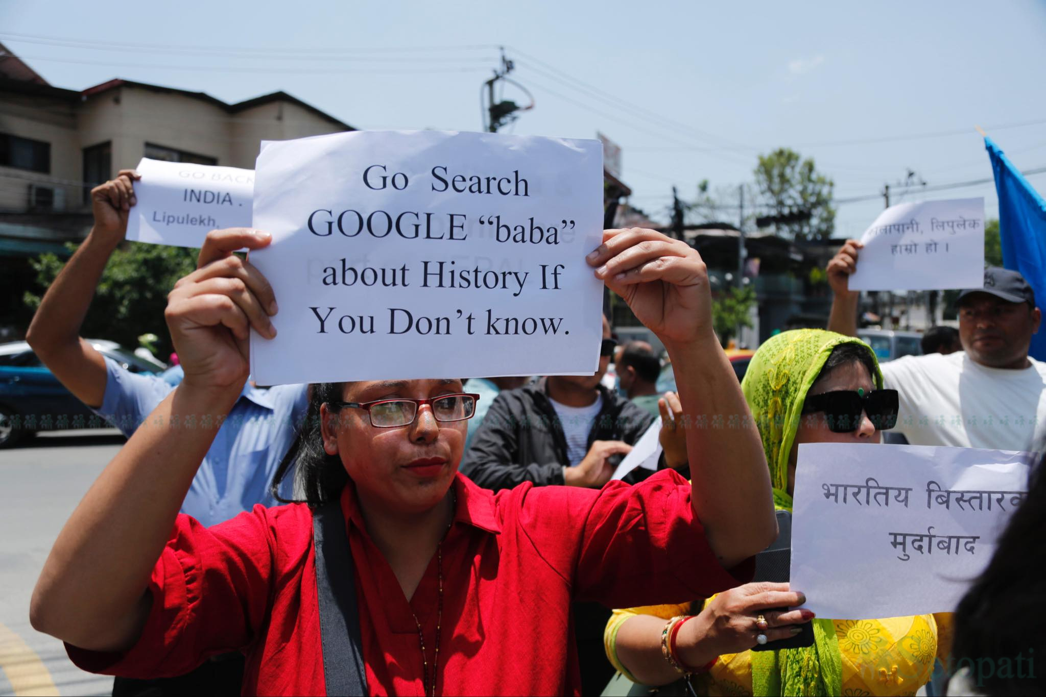 उनीहरूले 'भारतीय विस्तारवाद मुर्दावाद', 'कालापानी लिपुलेक हाम्रो हो' लगायत प्लेकार्ड बोकेर प्रदर्शन गरेका हुन्।