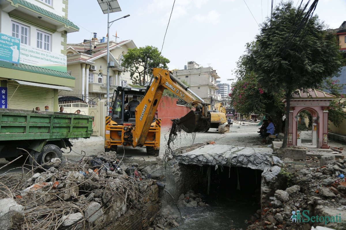 उनका अनुसार ती खोला छोप्न स्ल्याबहरू राखिएको थियो,' उनले भने, 'अहिले खोलाको 'राइट अफ वे' खोल्ने कार्य गरिएको हो।'