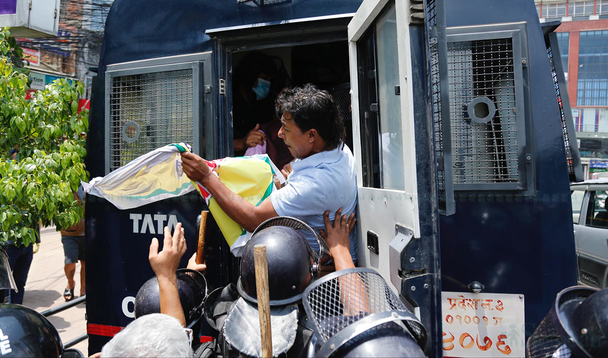 बिहीबार बानेश्वरस्थित निषेधित क्षेत्रमा प्रदर्शन गर्न खोजेपछि प्रहरीले १६ जनालाई नियन्त्रणमा लिएको जिल्ला प्रहरी परिसर काठमाडौंका एसपी सिताराम रिजालले जानकारी दिए। यसमा तीन जना महिला पनि छन्।