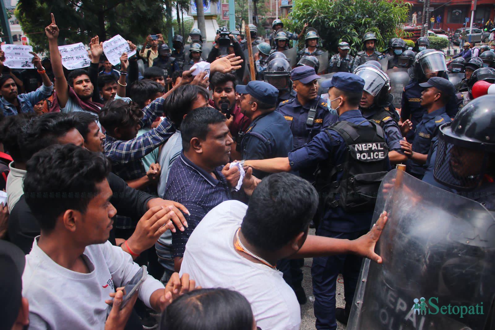 प्रहरीले उनीहरूलाई रोक्न खोज्दा झडप भएको हो। दुई जनाको टाउकोमा चोट लागेको आन्दोलनरत इन्द्रजित साफीले बताए।