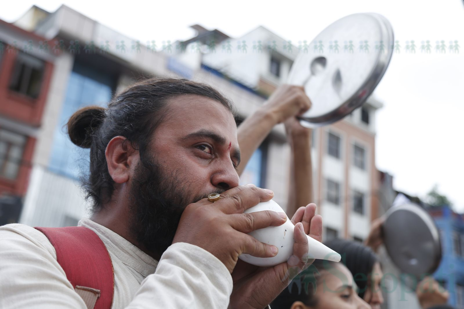 उनीहरूले शिक्षा मन्त्रालयविरूद्ध शंख फुकेर र थाल बजाएर माइतीघर मण्डलमा प्रदर्शन गरेका हुन्।