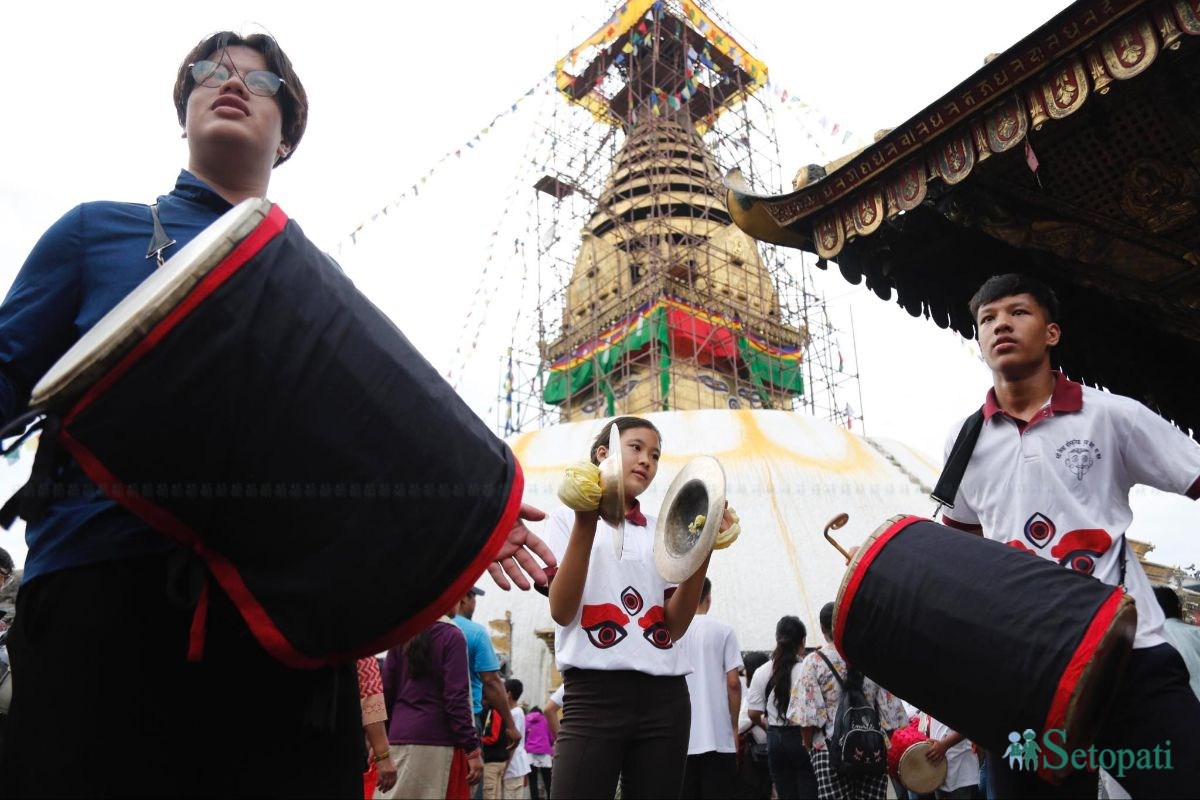 धर्म सञ्चय गर्ने महिनाका रुपमा यस अवधिमा स्वयम्भू महाचैत्यमा एक महिनासम्म मेला पनि लाग्ने गर्छ। भक्तजनले स्वयम्भू महाचैत्यको दर्शन परिक्रमापछि शोभाभगवतीसँगैका विजयश्वरीको दर्शन गरी केलटोलस्थितको सेतो मत्स्येन्द्रनाथको दर्शन गर्ने परम्परा छ।