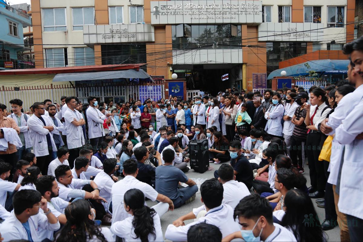 काठमाडौंको सिनामंगलस्थित केएमसी अस्पतालका एकजना डाक्टरमाथि कुटपिट भएपछि त्यहाँ कार्यरत सबै चिकित्सकहरू आन्दोलनमा उत्रिएका छन्।