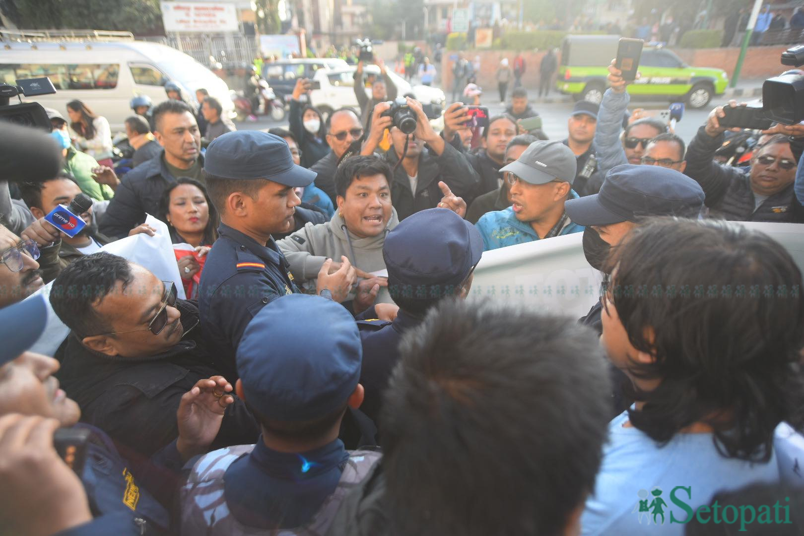ललितपुर महानगरपालिका अगाडि प्रदर्शन गर्न उभिएका अभियन्ता ई:लाई स्थानीयले अवरोध गरेका छन्।