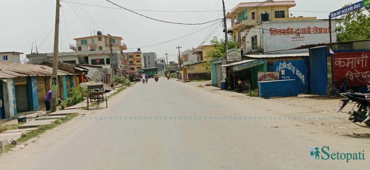 दिउँसोको समय सडकमा अत्यन्त कम संख्यामा मानिसहरू देखिन्छन्। सडकमा सवारी साधनको आवतजावत पनि कम नै छ।