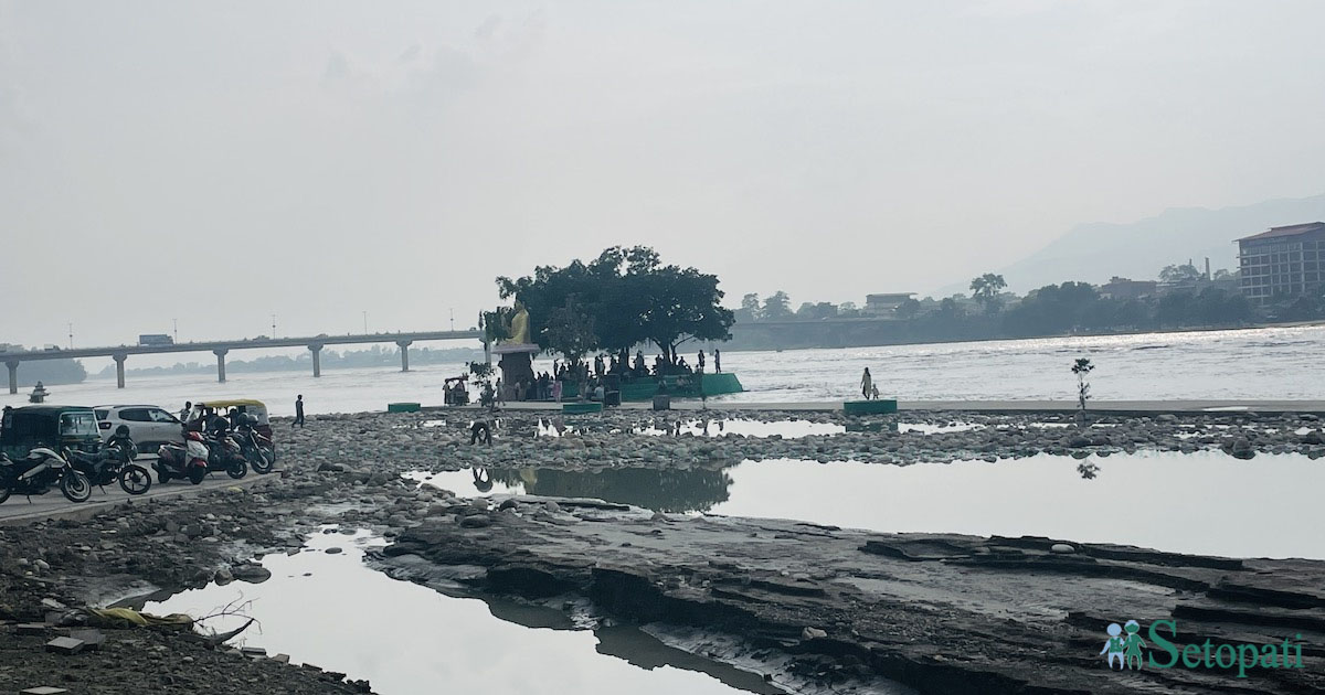 केही दिनअघिको बाढीले गैंडाकोटसँग जोड्ने पक्की पुलदेखि पश्चिमतर्फ रहेको झोलुंगे पुल पनि भत्काइदियो। हिउँदमा लगभग सुक्खा देखिने नगरवनपूर्वको भंगालोमामात्रै होइन यसपाली बस्तीमै नदीको पानी पुगेको थियो। नारायणीले झोलुंगे पुलमात्रै भत्काएन, नदी किनारमा थुपार्ने, पुर्ने गरिएको फोहोर पनि बगाएर लग्यो।