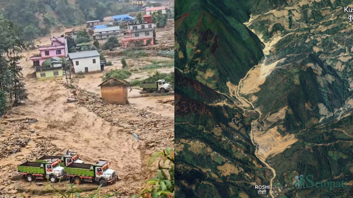 ‘कसरी यस्तो विध्वंश निम्तियो, म बताउन सक्दिन,’ उनले भने, ‘एउटा घर तल बगिसक्यो। त्यहाँको कागजपत्र निकाल्न पाइएन। अर्को घर पनि तलबाट काट्न सुरू भइसकेको छ। कतै सुरक्षित भएन।