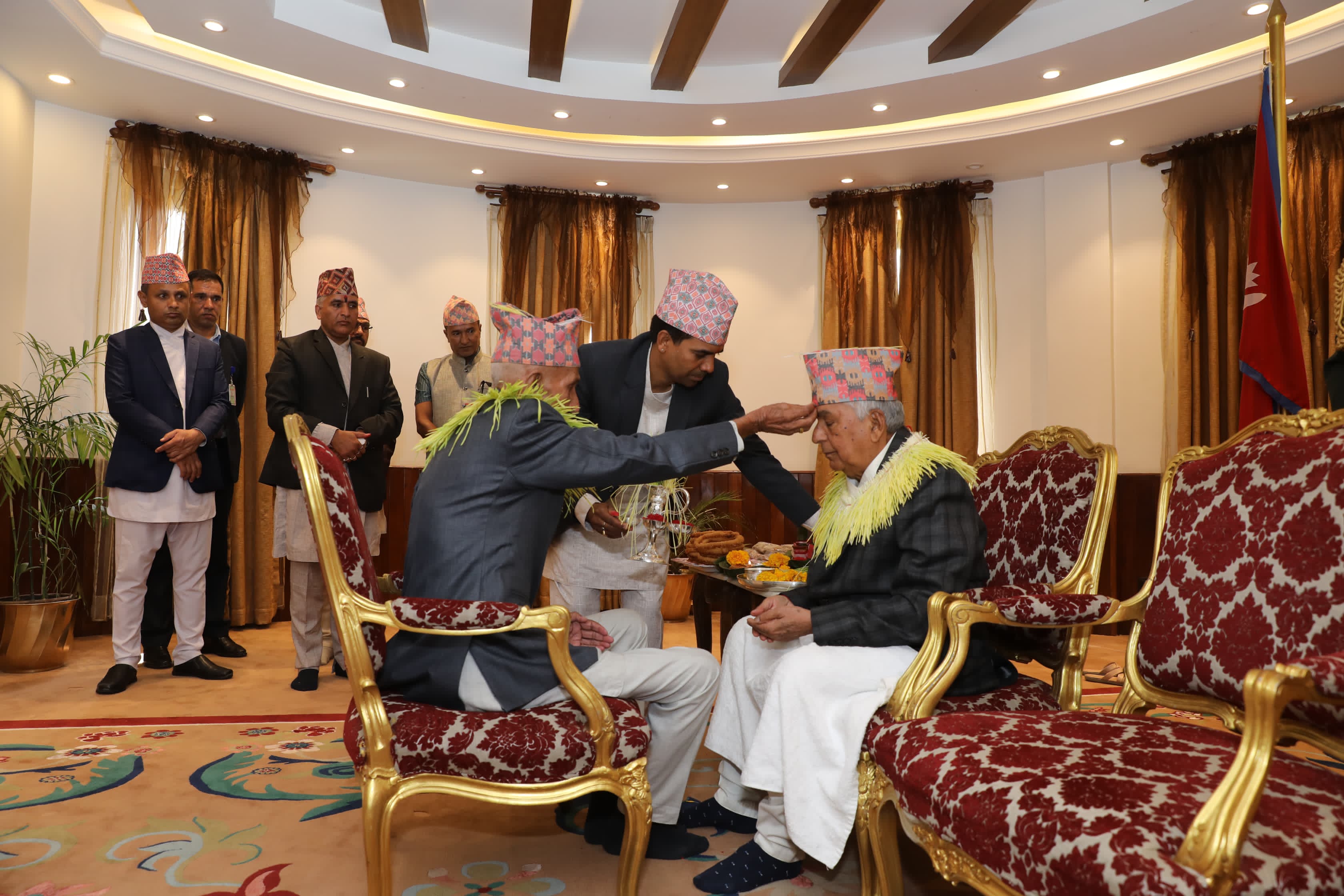 राष्ट्रपति रामचन्द्र पौडेलले शनिबार शुभसाइतमा यस वर्षको दसैंको टीका, प्रसाद, जमरा र आशिर्वाद ग्रहण गरेका छन्।