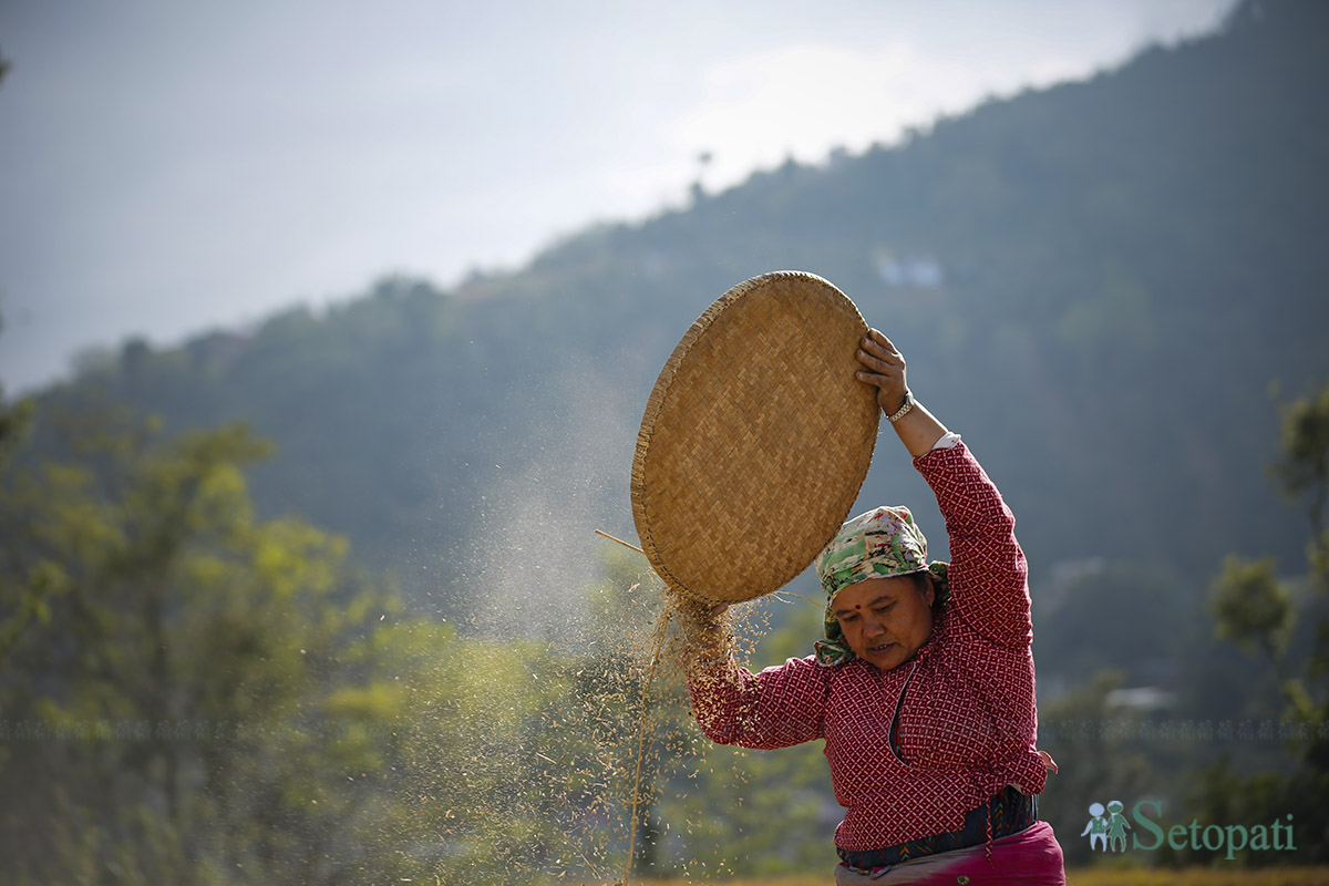 अन्यत्र जस्तै काठमाडौं उपत्यका वरपरका किसानहरू पनि हिजोआज आफ्नो खेतको धान भित्र्याउन व्यस्त छन्।