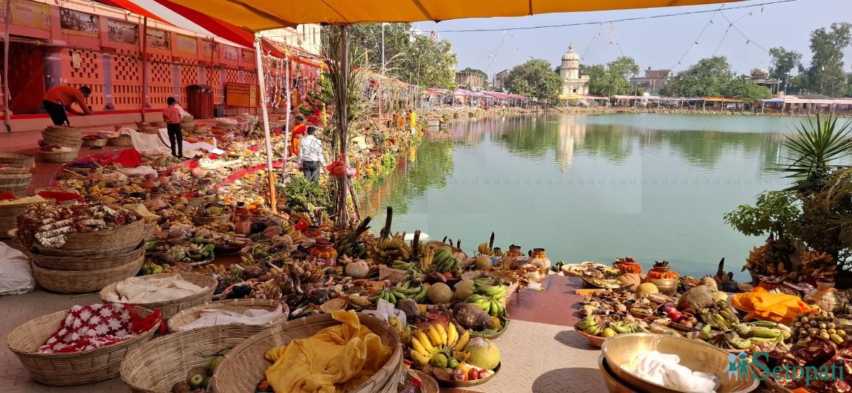 जनकपुरको पोखरी तथा जलाशयमा बुधवार रातिदेखि नै श्रद्धालुहरू पुजा सामग्री लिएर घाटमा पुगेका छन्।