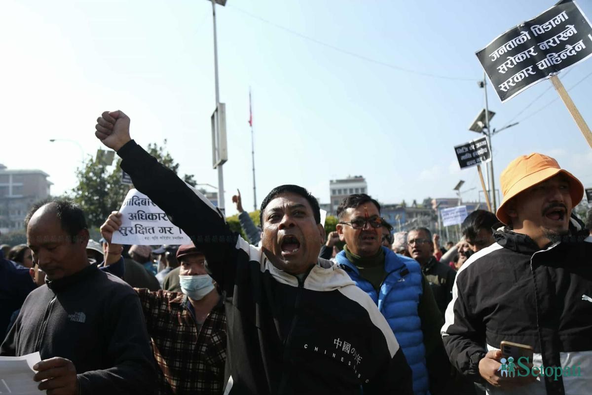 भूमि अधिकार संरक्षण संघर्ष समिति र गैरन्यायिक सडक तथा खोला मापदण्ड पीडित संघर्ष समितिले जनतालाई उठिवास गर्ने मापदण्ड आवश्यक नरहेको भन्दै बिहीबार माइतीघर मण्डलमा प्रदर्शन गरेको हो।