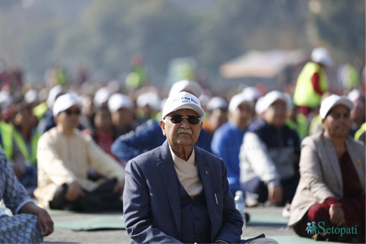 कार्यक्रममा प्रधानमन्त्री केपी शर्मा ओलीसहित विभिन्न दलका नेताहरू सहभागी थिए। उनीहरूले त्यहाँ उपस्थित सयौं मानिसहरूसँगै ध्यान गरेका थिए।