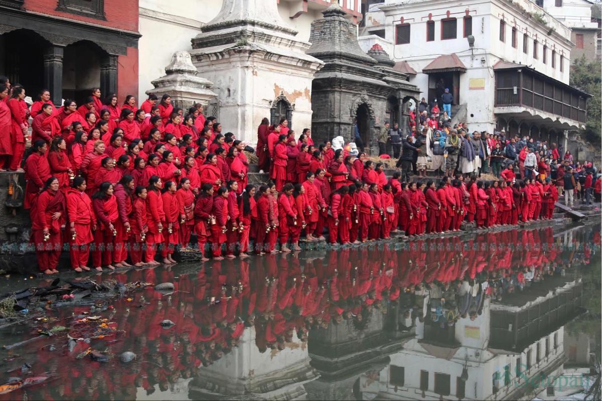 माधवनारायणका व्रतालुहरूले बुधबार बिहानै पशुपतिस्थित बागमती नदीमा स्नान गरेका छन्।