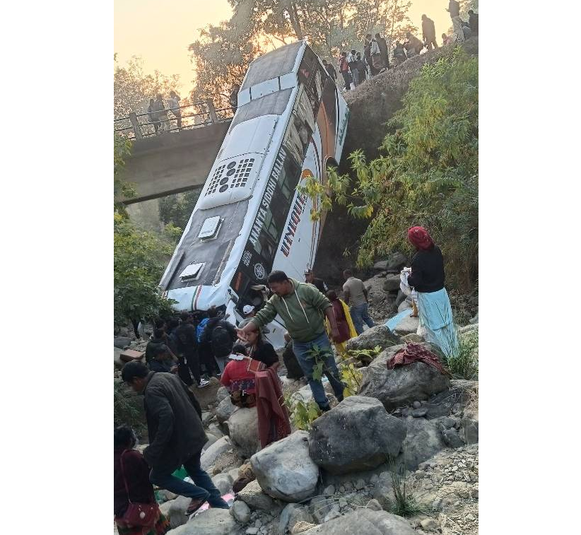 आइतबार बेलुका साढे ५ बजे भे १ ख ४३३१ नम्बरको बस दुर्घटनामा परेको हो। बस भारतको उत्तर प्रदेशस्थित गंगा, यमुना र सरस्वतीको त्रिवेणी प्रयागराजमा जारी कुम्भ भेलामा जाँदै गरेको प्रहरीले जानकारी दिएको छ।