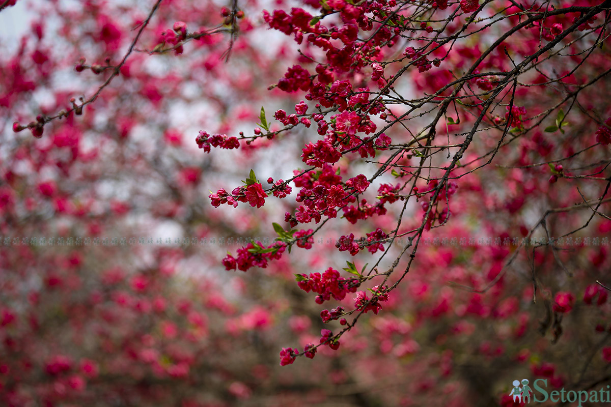 सहरका किनारैभरि रातै, सेतै फुलेको आरू–चेरीको मोहक सौन्दर्यले युवायुवतीलाई तानेको छ। उनीहरू पातै छोपिने गरी फुलेका यी फूलको सौन्दर्यलाई मोबाइलमा कैद गरिरहेका भेटिन्छन्। कोही यिनै फूलसँग मुसुक्क मुस्कुराउँदै सेल्फीसमेत खिचिरहेका हुन्छन्।