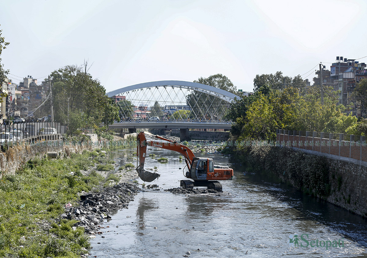 काठमाडौं डल्लुस्थित विष्णुमति नदीमा थुप्रिएको ढुंगामाटो र फोहोर महानगरले पन्छाउन थालिएको छ।