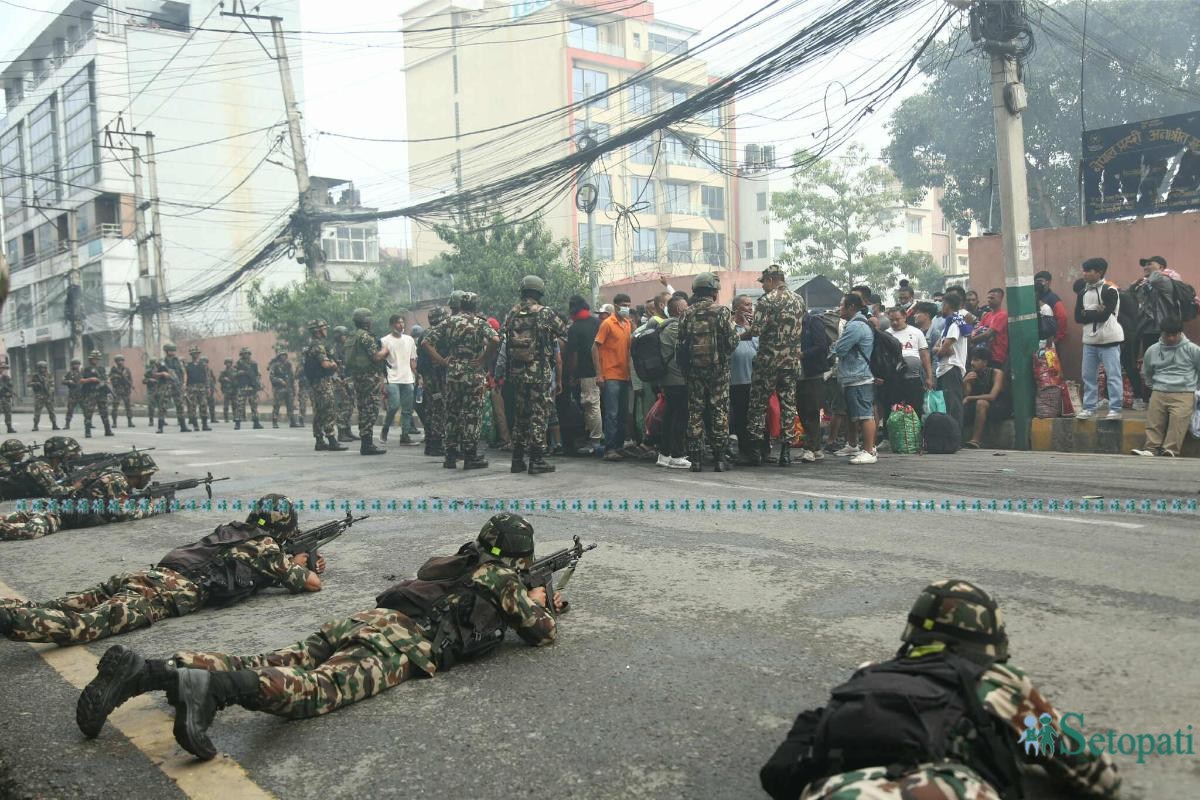 सेनाले घेरे पनि उनीहरूले नाराबाजी गर्न छाडेका छैनन्।