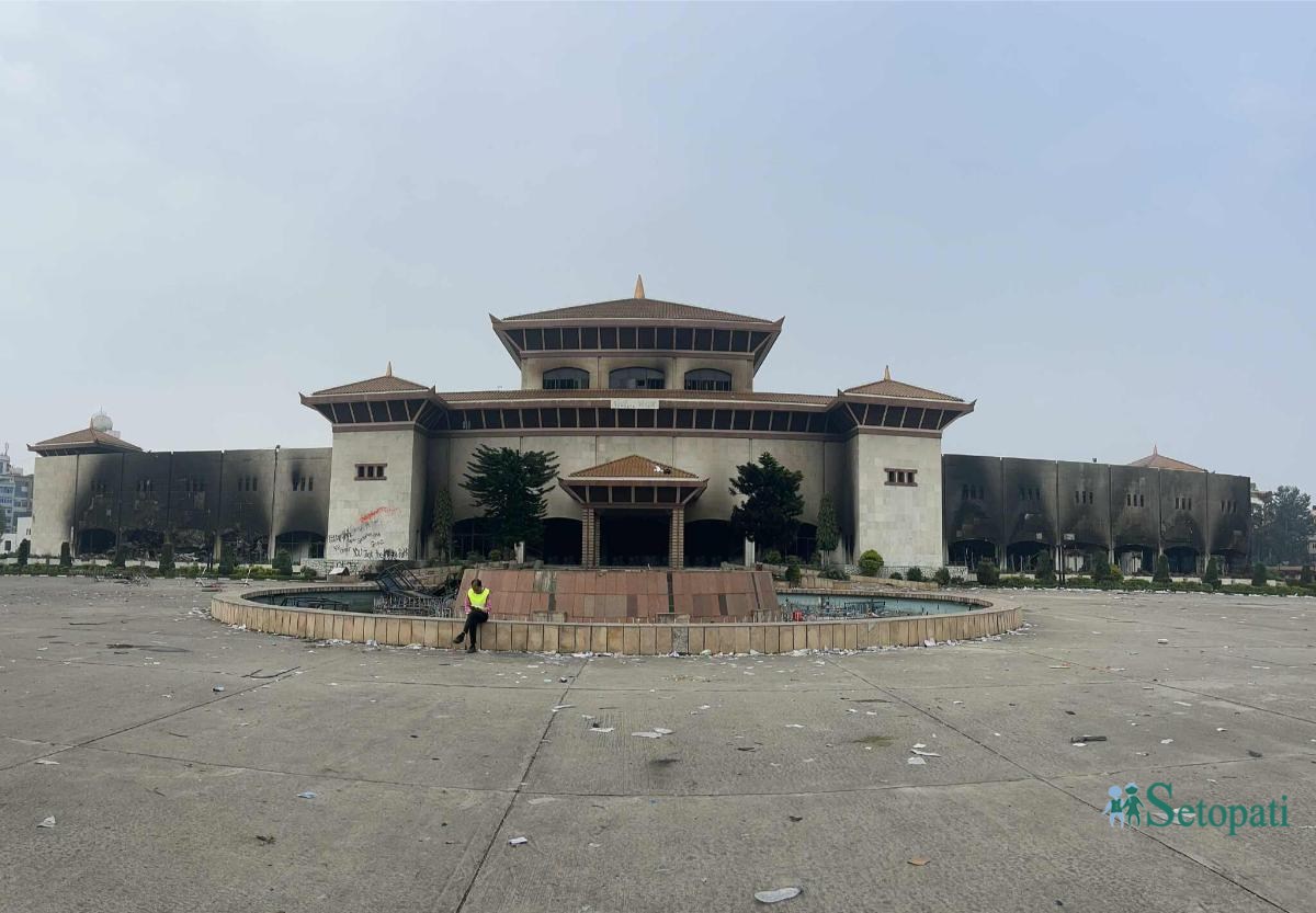 नयाँ बानेश्वरस्थित संसद भवन खण्डहर बनेको छ।