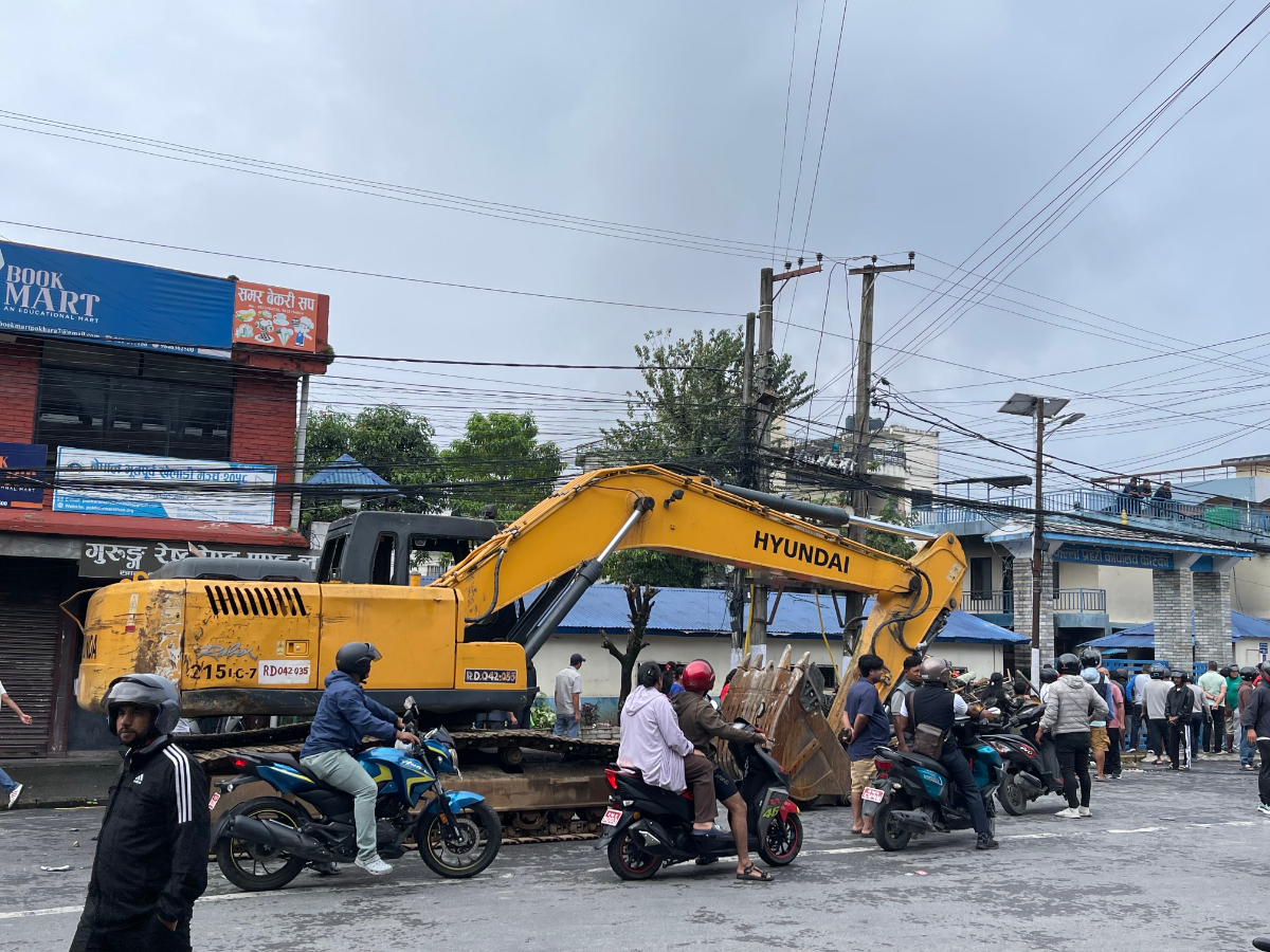 जेनजी प्रदर्शनको दोस्रो दिन केही प्रदर्शनकारीले जिल्ला प्रहरी कार्यालय कास्कीमा आक्रमण गर्न डोजर लिएर गए।