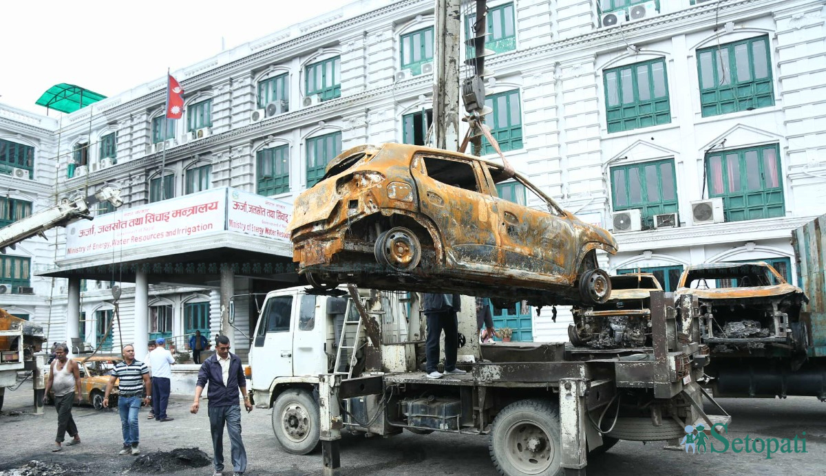 सिंहदरबारभित्र तोडफोड र आगजनी गरिएका सवारी साधनहरू नयाँ बानेश्वरस्थित संसद भवनमा लगेर व्यवस्थापन भइरहेको छ।