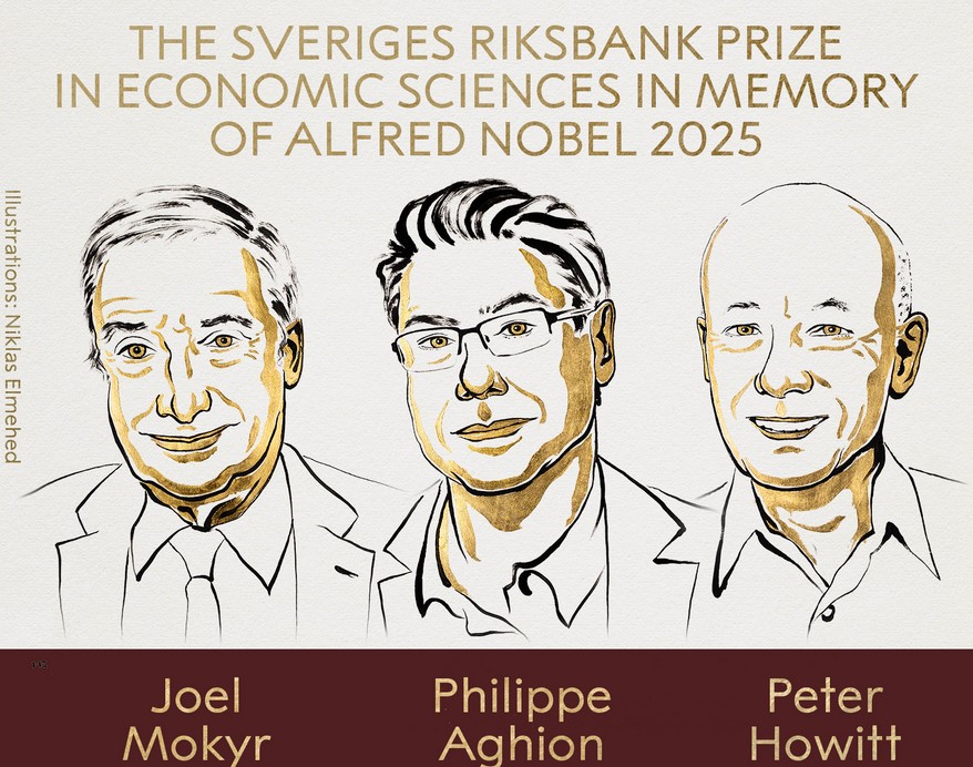 आधुनिक अर्थव्यवस्थामा नवप्रवर्तन र सिर्जनात्मक विनाशको शक्तिले कसरी आर्थिक वृद्धि हासिल गर्न सक्छ भन्ने बारेमा गरेको कामको लागि जोएल मोकिर, फिलिप एगियन र पिटर होविटलाई अर्थशास्त्रमा सन् २०२५ को नोबेल पुरस्कार प्रदान गरिएको छ।