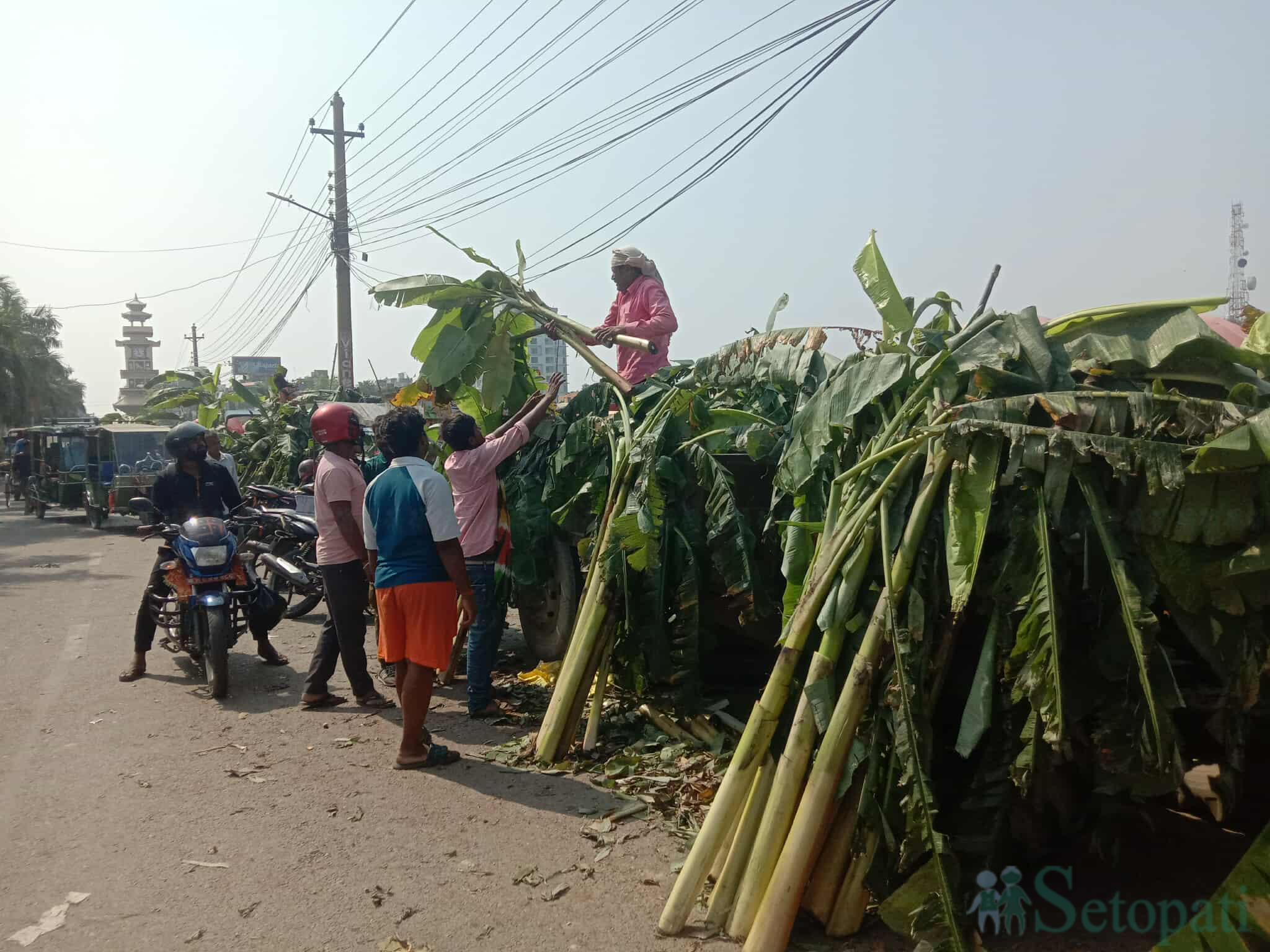 रौतहटकै गढीमाई नगरपालिका ७ धर्मपुरका दिनेश राय यादव पनि बिहान २ बजेतिर वीरगञ्ज आएका थिए। ६ हजार रुपैयाँ प्रति ट्याक्टर भाडा तिरेर दुई ट्याक्टर केराको खम्बा ल्याएका थिए।