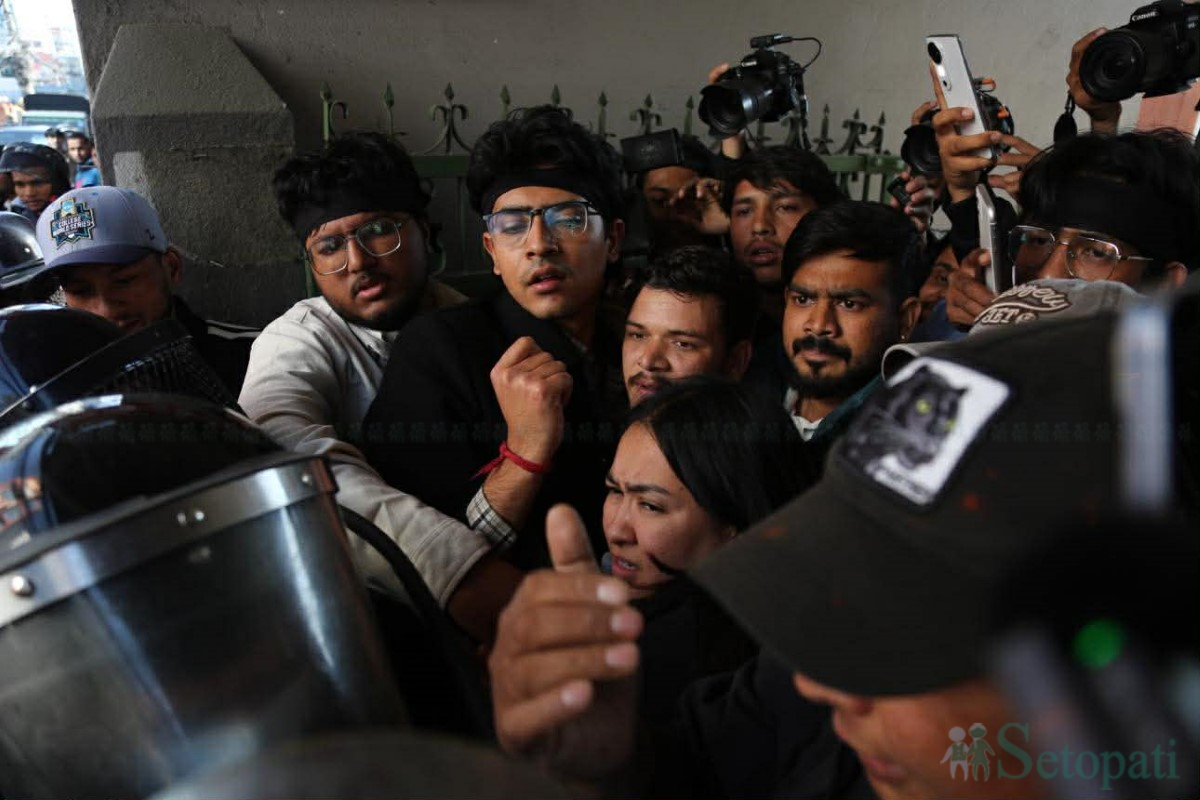 त्यसबीच ढुंगाना लगायतले प्रहरीलाई धकेलाधकेल समेत गरेका छन्।