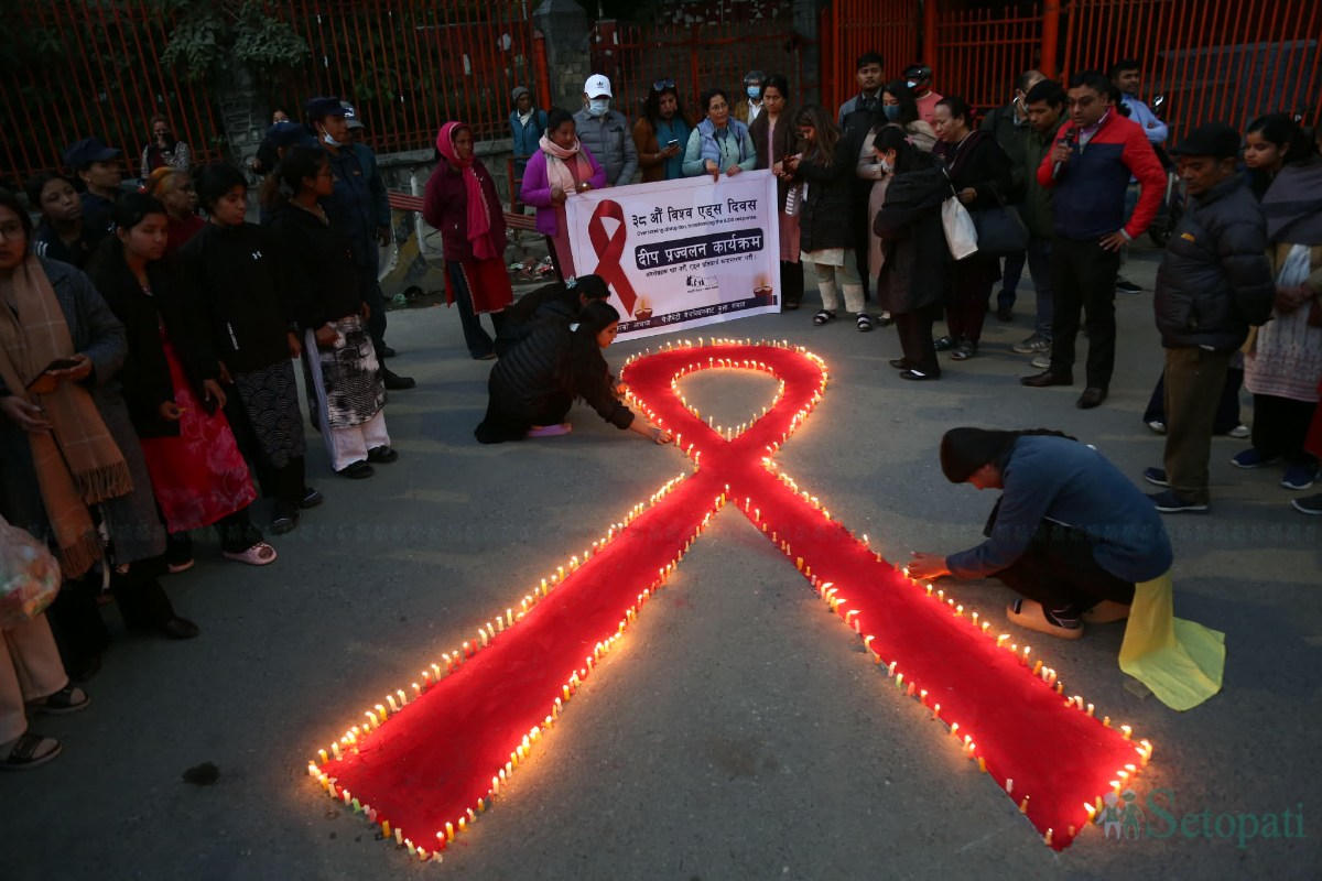माइती नेपालले आइतबार ३८औं एड्स दिवसको अवसरमा दीप प्रज्वलनको आयोजना गरेको हो। गौशाला चोकमा आयोजित उक्त कार्यक्रममा मानिसहरूले एड्सबाट ज्यान गुमाएकालाई श्रद्धाञ्जली दिएका हुन्।