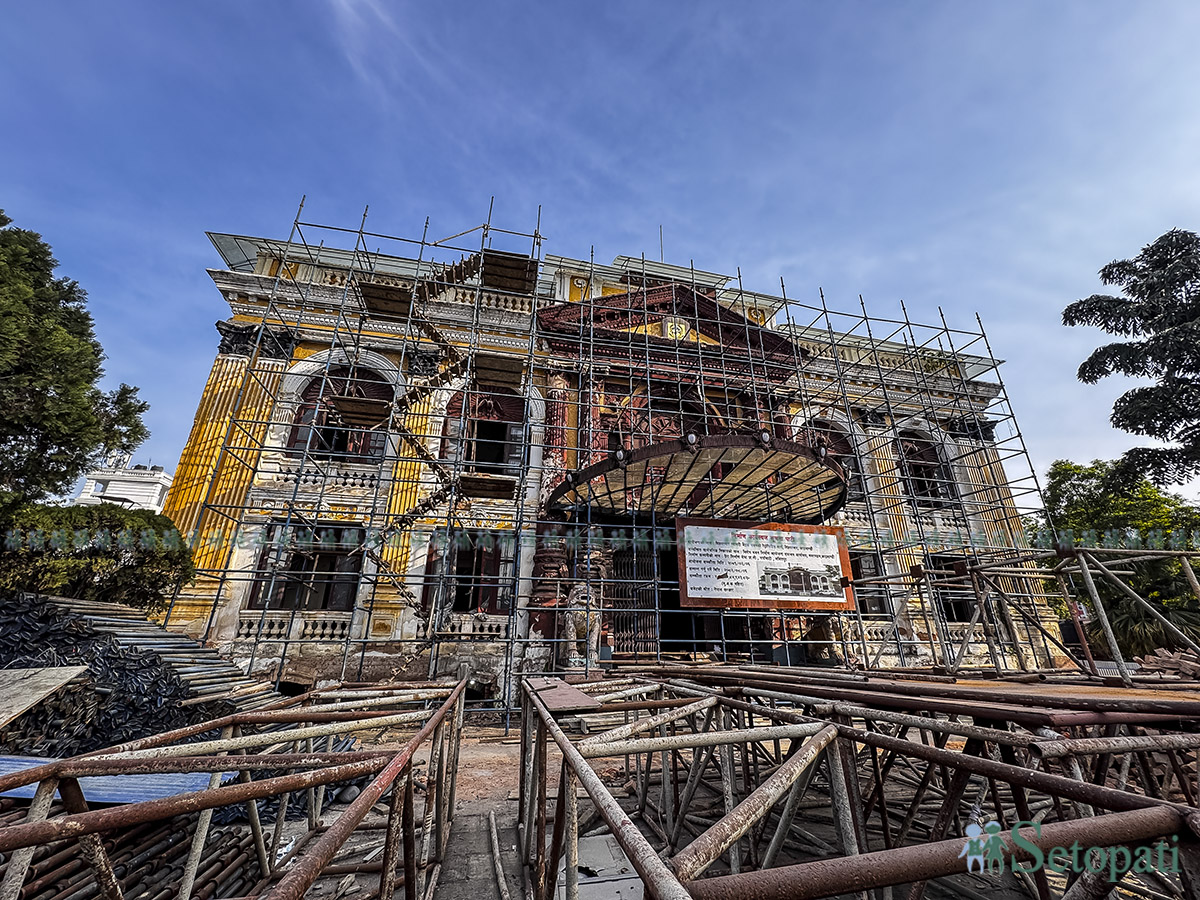 सिंहदरबारभित्र रहेको ग्यालरी बैठक प्रवलीकरण (रेट्रोफिटिङ) भइरहेको छ।