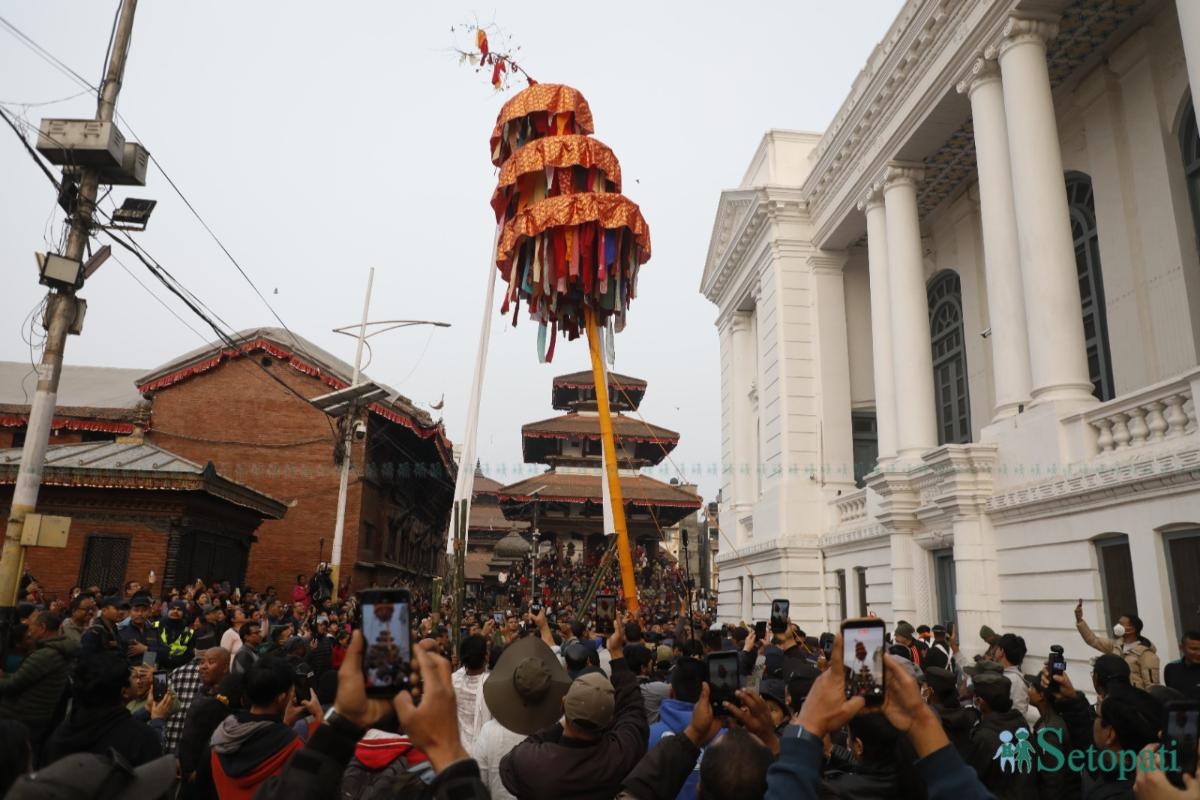 काठमाडौंको हनुमानढोकास्थित बसन्तपुरमा होलीको चीर ठड्याइएको छ।