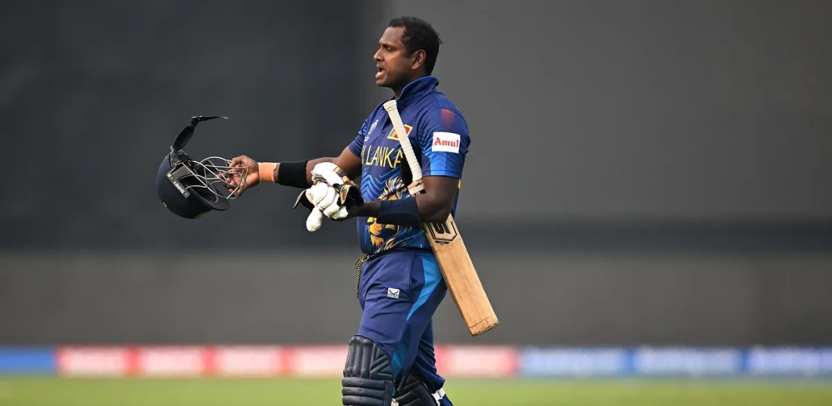 बंगलादेशविरूद्ध दिल्लीमा टस हारेर पहिले ब्याटिङ गरिरहेको श्रीलंकाका सदीरा सामाराविक्रमा २४.२ ओभरमा ४१ रनमा आउट भएका थिए। त्यसपछि मैदान प्रवेश गरेका म्याथ्युजले ब्याटिङका लागि तयार हुँन ढिलाइ गरेका थिए। जसका कारण उनलाई अम्पायरले टाइम आउटको रुपमा आउट गरे।