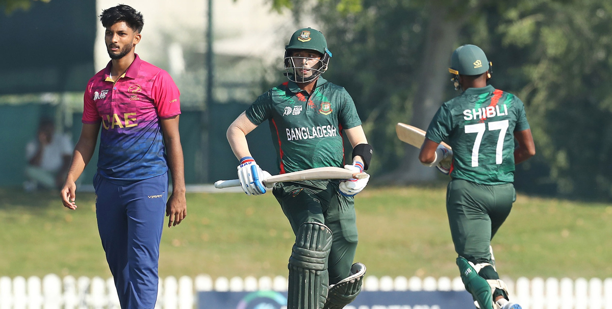 एसिसी यू-१९ एसिया कपमा बंगलादेशले युएईलाई २२९ रनको लक्ष्य दिएको छ।