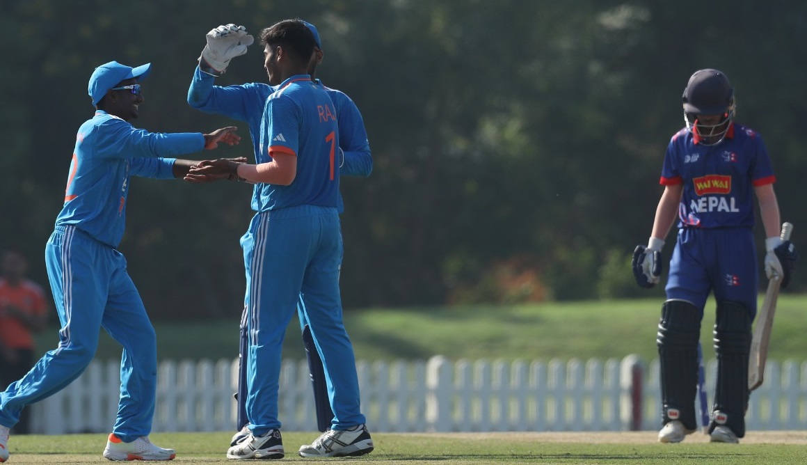 पहिलोदेखि छैटौं विकेट गुमाउँदा नेपालले १२ रन मात्र जोड्न सकेको थियो। नेपालविरुद्ध भारतका तीव्र गतिका बलर राज लिम्बानीले सुरूवातदेखि नै घातक बलिङ गरेका थिए।