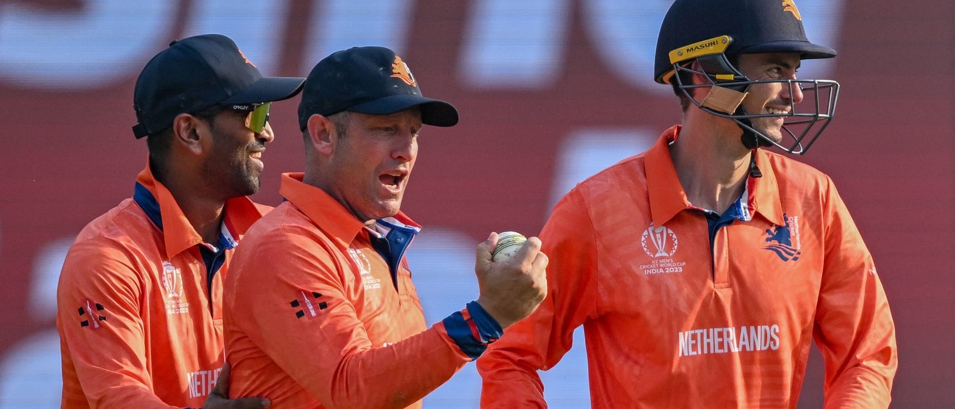 नेदरल्याण्ड्सको टोली: स्कट एडवर्ड्स (कप्तान), आर्यन दत्त, बास डे लीड, डेनियल डोरम, फ्रेड क्लासेन, काइल क्लेन, लोगान भान बीक, म्याक्स ओ'डाउड, माइकल लेभिट, पल भान मिकेरेन, साइब्रान्ड एंगेलब्रेच, तेजा निदामानुरु, टिम प्रिन्गल, विक्रम सिंह, भिव किंगा, वेस्ली ब्यारेसी