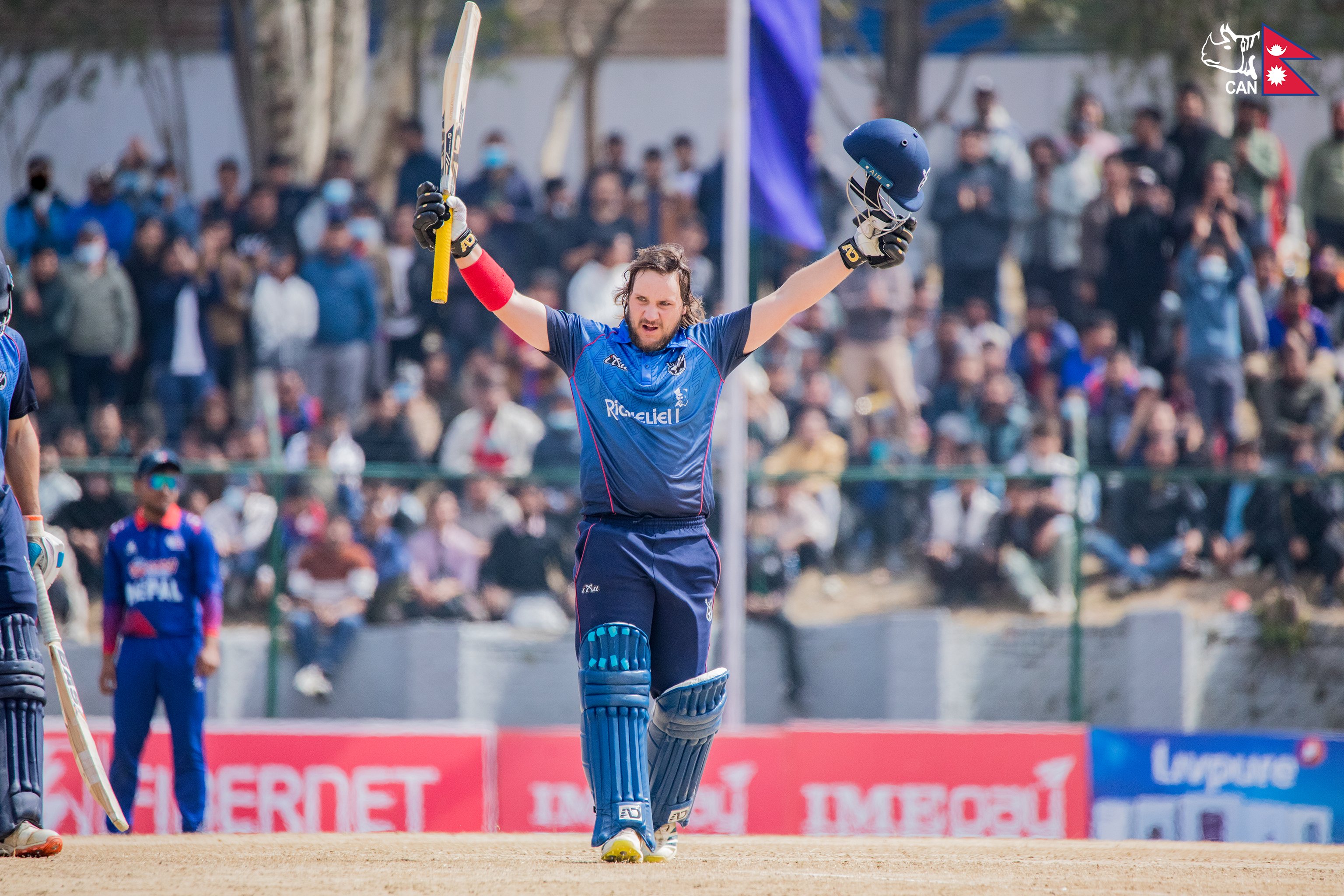 नेपालमा भएको घरेलु टोली, नामिबिया र नेदरल्यान्ड्स सम्मिलित त्रिदेशीय शृंखलाको उद्घाटन खेलमा उनले सो कोसेढुङ्गा पार गरेका हुन्। कीर्तिपुरस्थित त्रिवि क्रिकेट मैदानमा घरेलु टोली नेपालविरुद्ध खेल्दै उनले ३३ बलमा शतक बनाएका थिए। एक बल कम खेल्दै उनले नेपाली अलराउन्डर कुशल मल्लको (हाल सबैभन्दा छिटो शतक बनाउने सूचीमा चौथो स्थानमा) कीर्तिमान तोडेका हुन् ।