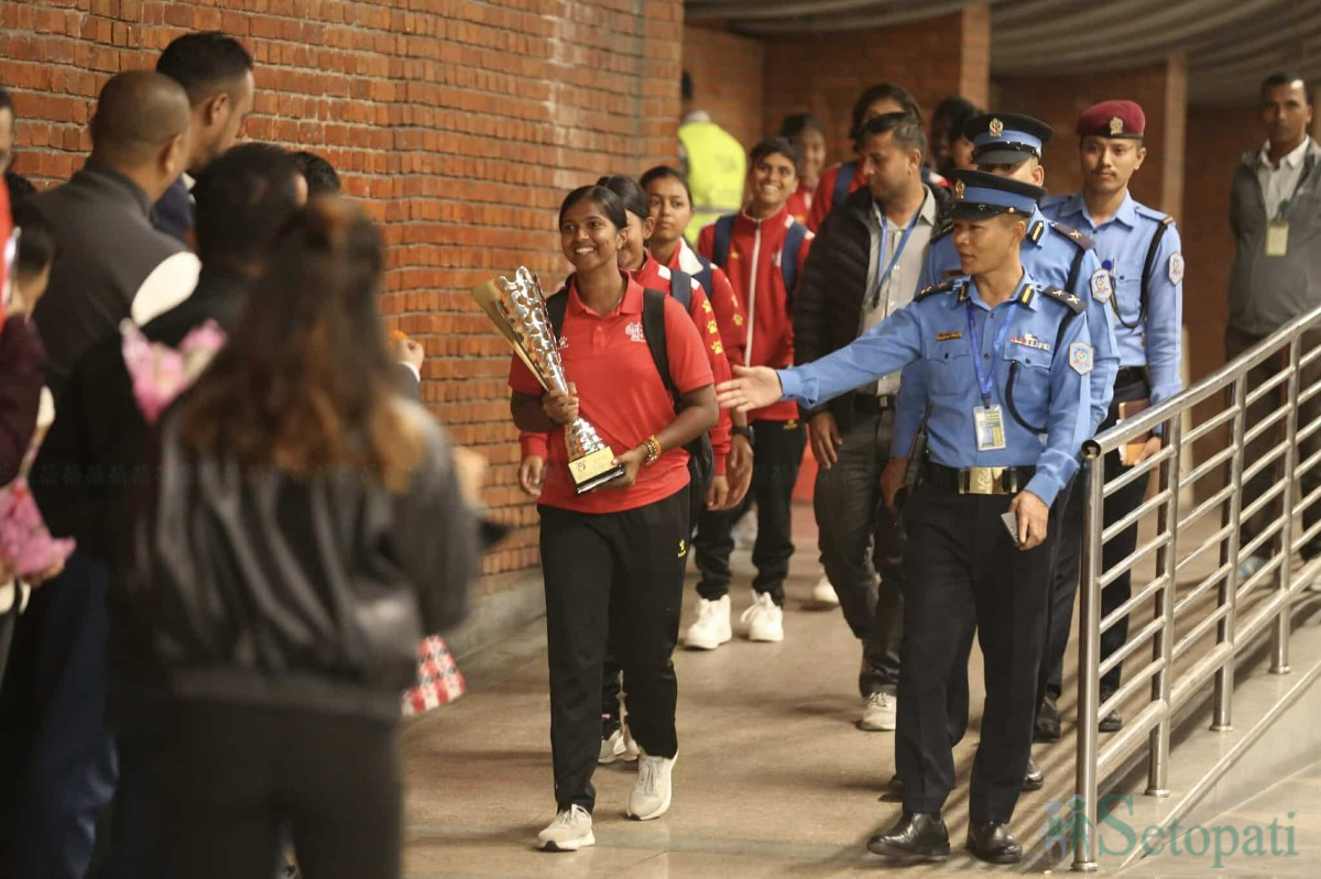 नेपाली टोलीलाई त्रिभुवन अन्तर्राष्ट्रिय विमानस्थलमा बिहीबार स्वागत गरिएको हो।