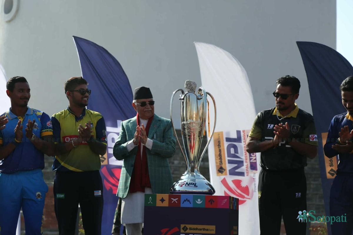 सोमबार बिहान धरहरा परिसरबाट प्रधानमन्त्री केपी शर्मा ओलीले एनपिएलको ट्रफी सार्वजनिक गरेका हुन्।