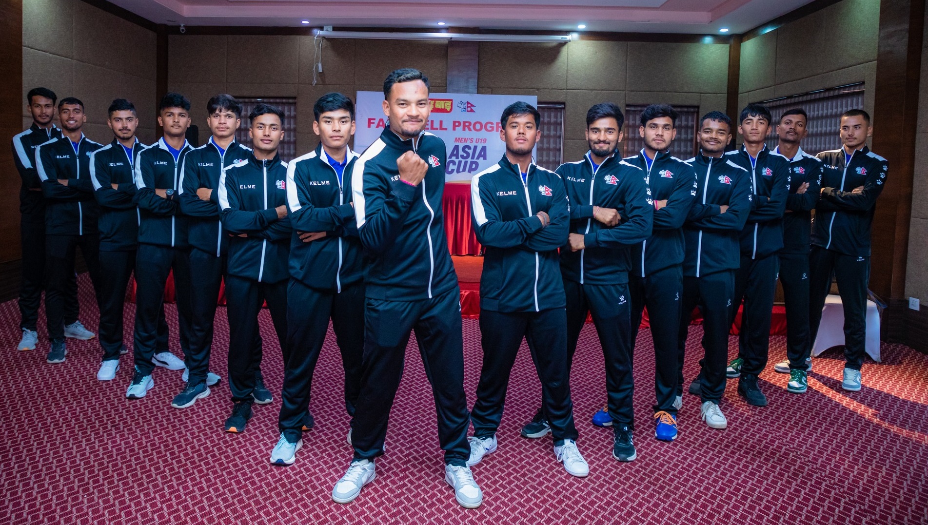 नेपाली टोलीमा कप्तान हेमन्त धामीसँगै अर्जुन कुमाल, आकाश त्रिपाठी, उत्तम रंगु थापामगर, मयन यादव, नरेन साउद, युनिसविक्रम सिंह ठकुरी, नरेन भट्ट, सन्तोष यादव, युवराज खत्री, रोशन विश्वकर्मा, विपिनकुमार महतो, अप्राजित पौडेल, अभिषेक तिवारी र रन्जित कुमार छन्।