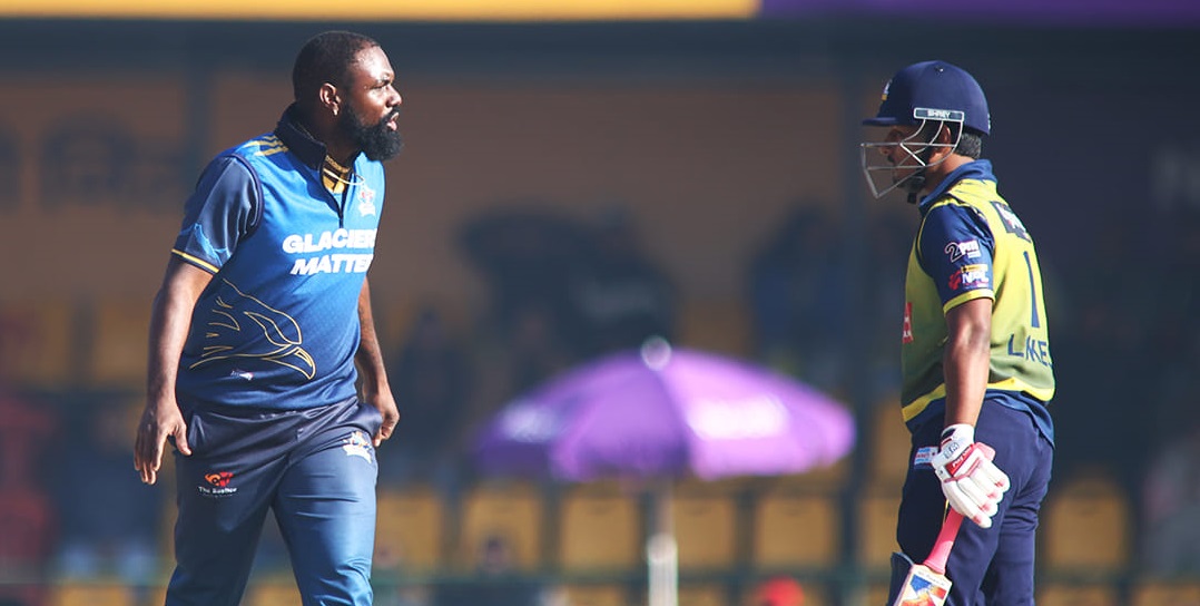 त्यसअघि ओपनर लोकेश बमले २६ रन जोडे। पावरप्लेको अन्तिम बलमा रेमन्ड राइफरको बलमा क्याच हुनुअघि उनले १६ बलमा २ चौका र २ छक्का प्रहार गरे।