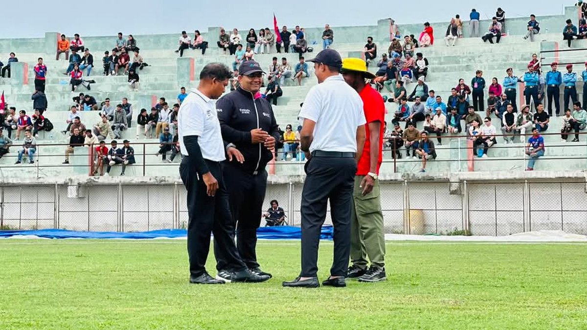 तर बिहानैदेखि वर्षा भएपछि निर्धारित समयमा खेल सुरू हुन सकेन। वर्षा रोकिए पनि मैदान चिसो भएकाले दिउँसो २ बजेसम्म खेल प्रतिक्षा गरिएको थियो।
