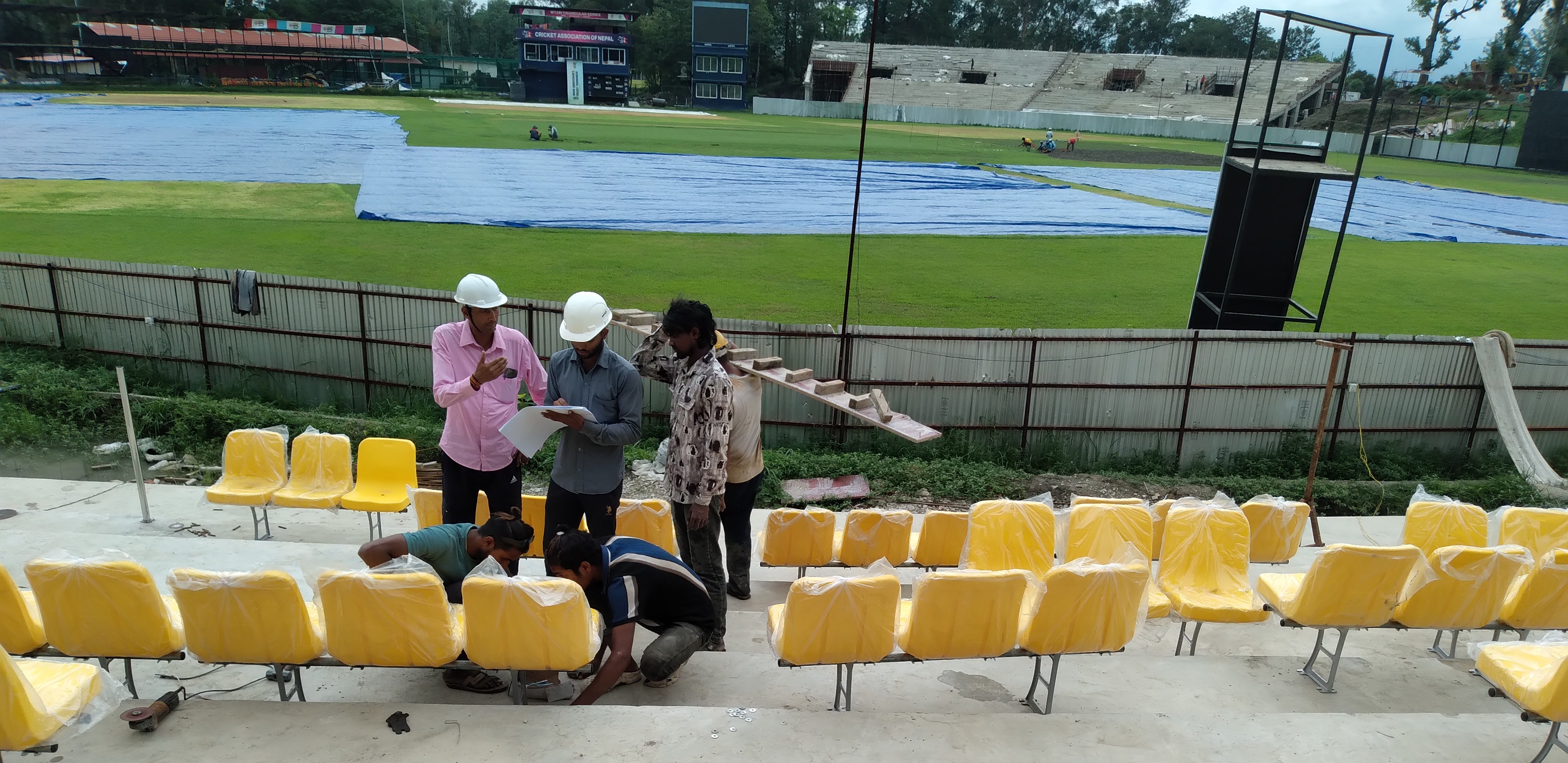 कीर्तिपुरस्थित त्रिवि क्रिकेट मैदानको प्यारापिटमा सिट जडान कार्य सुरु भएको छ।