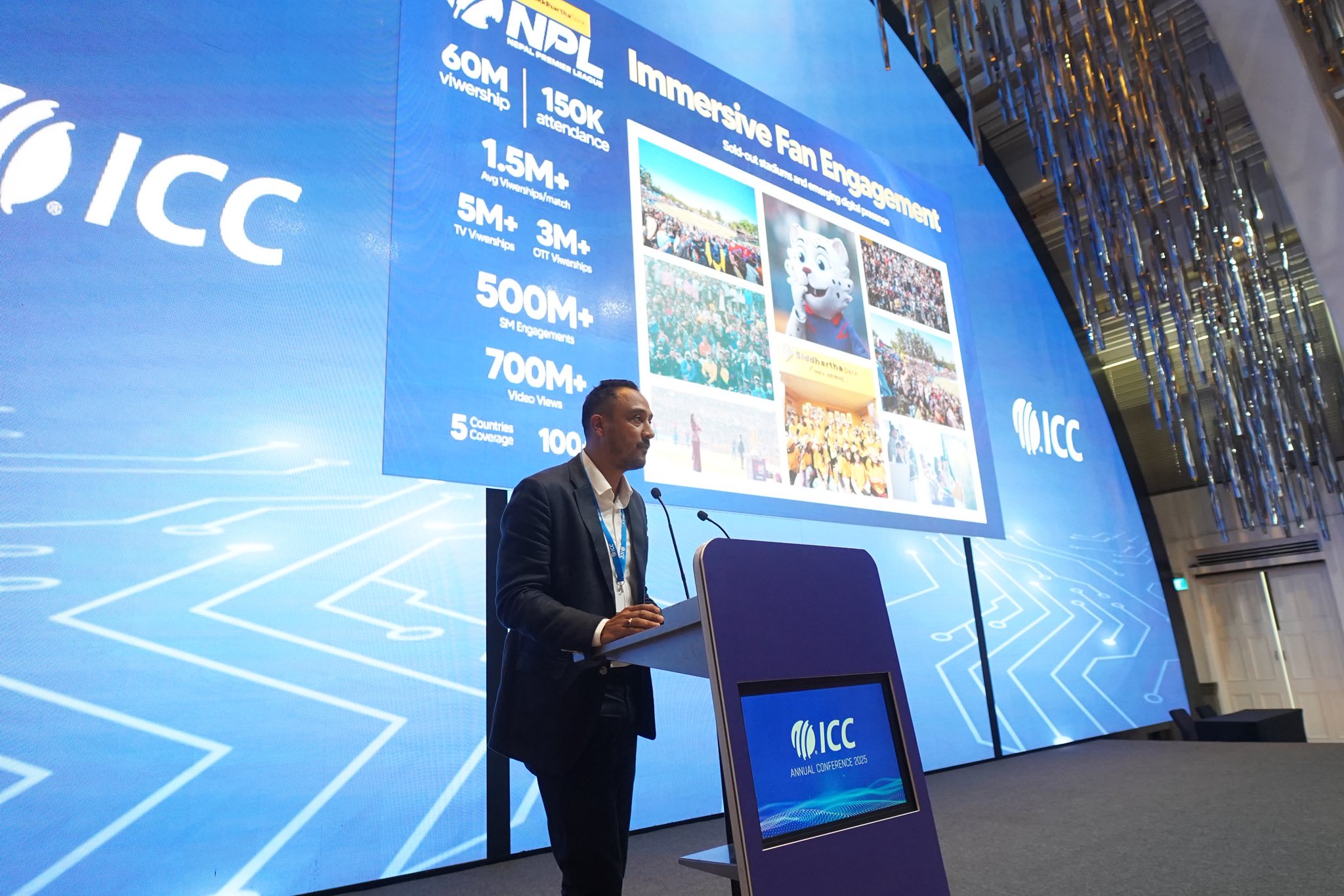 अन्तर्राष्ट्रिय क्रिकेट परिषद (आइसिसी) को वार्षिक साधारण सभामा नेपाल क्रिकेट संघ (क्यान) का सचिव पारस खड्काले नेपाल प्रिमियर लिग (एनपिएल) र नेपाल क्रिकेटबारे दश मिनेट लामो प्रस्तुती दिएका छन्।