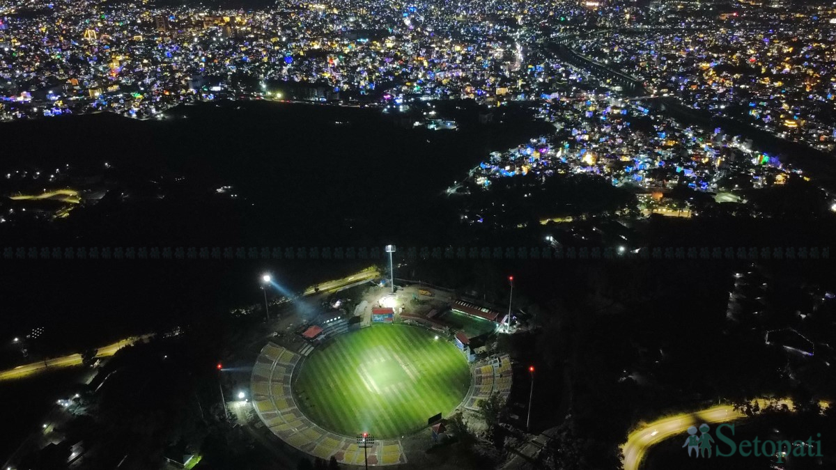 लक्ष्मीपूजाको अवसरमा त्रिभुवन विश्वविद्यालय अन्तर्राष्ट्रिय क्रिकेट रंगशाला सोमबार साँझ विशेष रूपमा झिलमिलिएको छ।